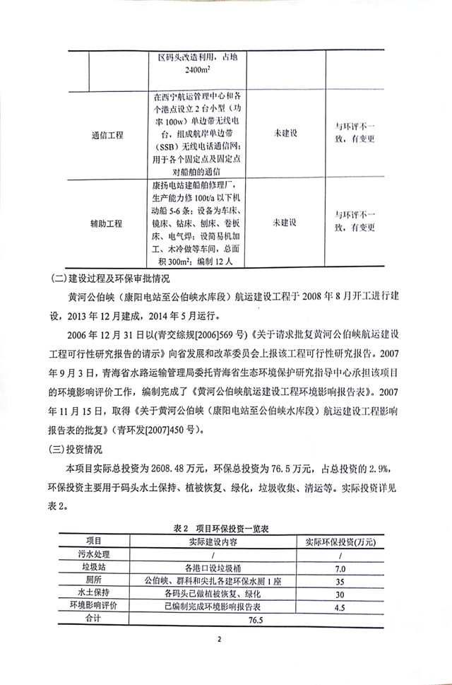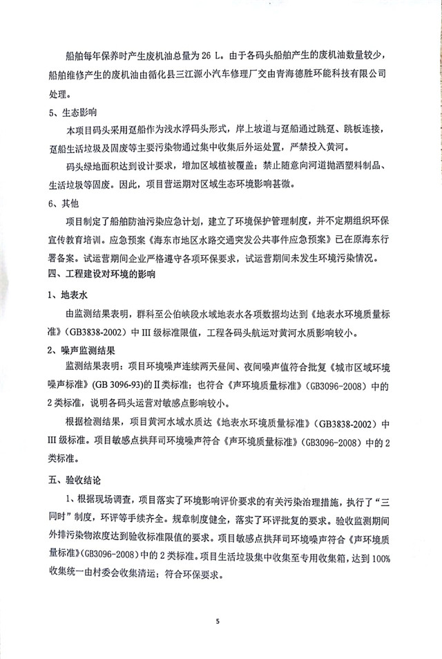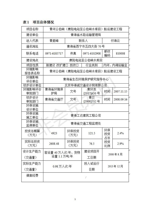 黃河公伯峽(康楊電站至公伯峽水庫段)航運(yùn)建設(shè)工程竣工環(huán)境保護(hù)驗(yàn)收調(diào)查報(bào)告表公示發(fā)布日期:(2018-11-16) 點(diǎn)擊次數(shù):2566 |