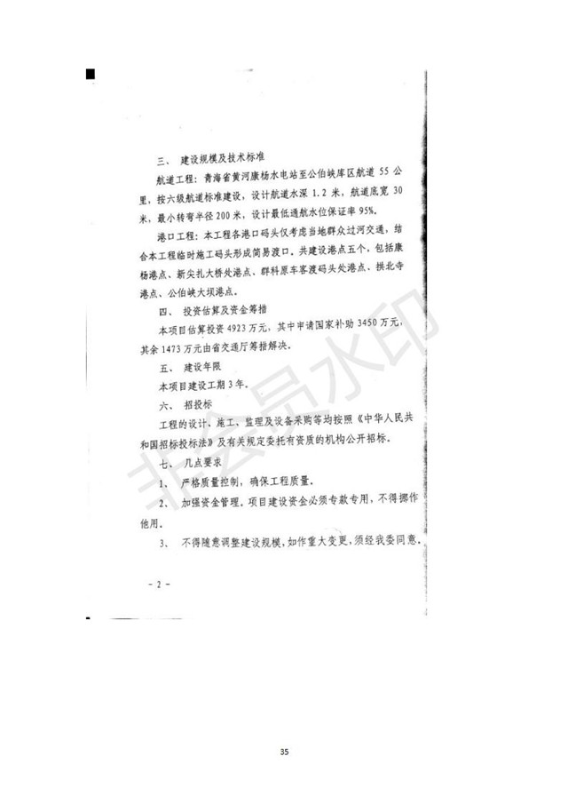 黃河公伯峽(康楊電站至公伯峽水庫段)航運(yùn)建設(shè)工程