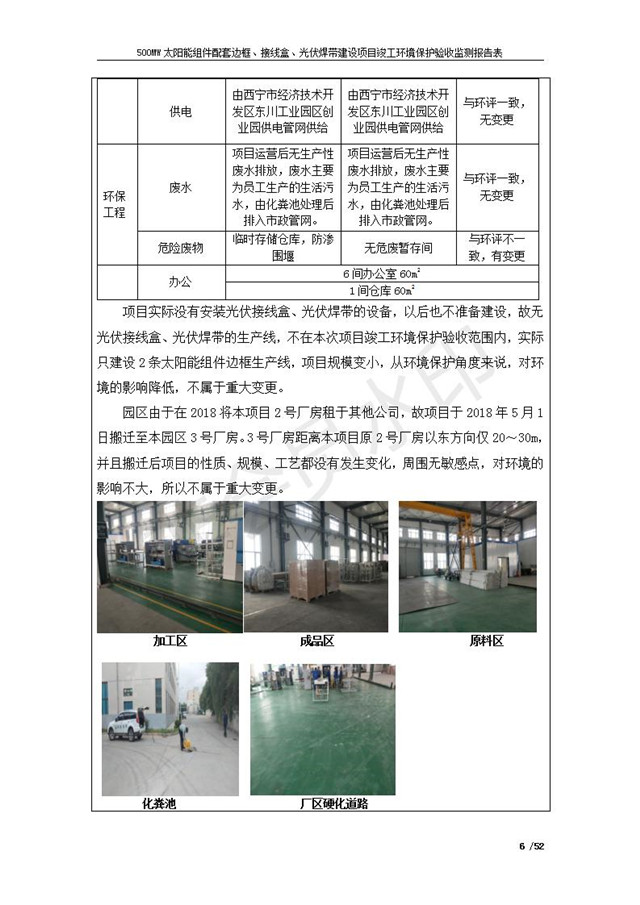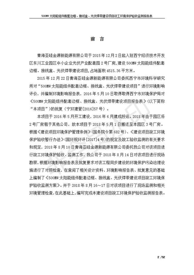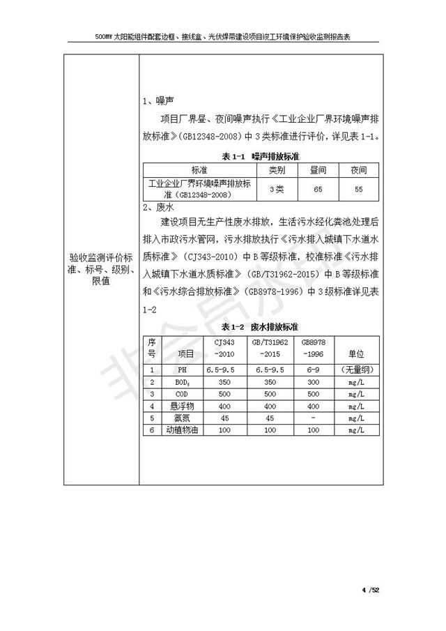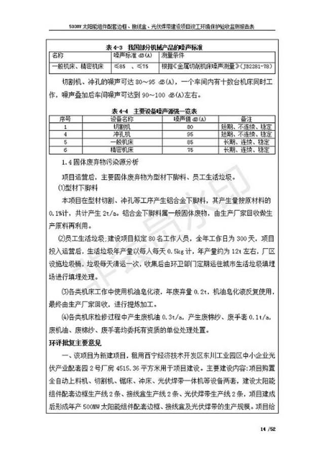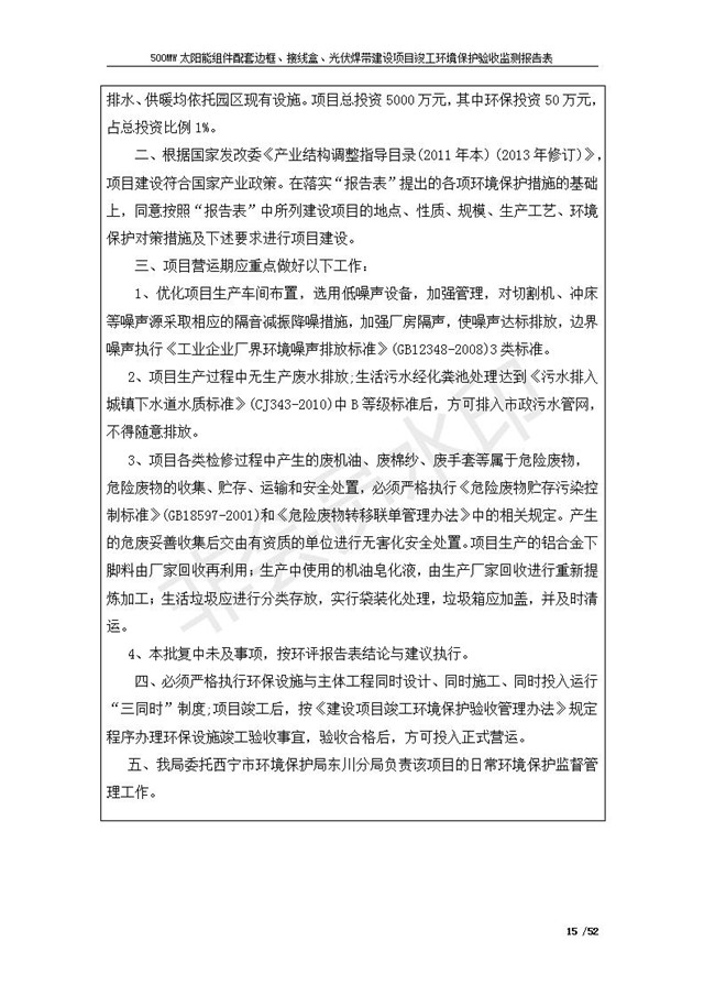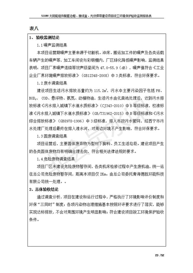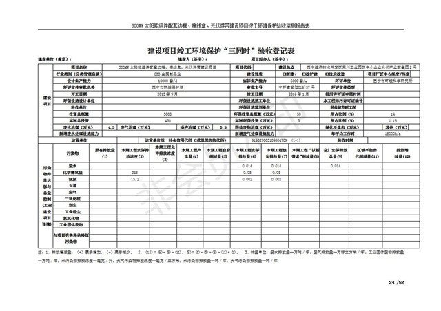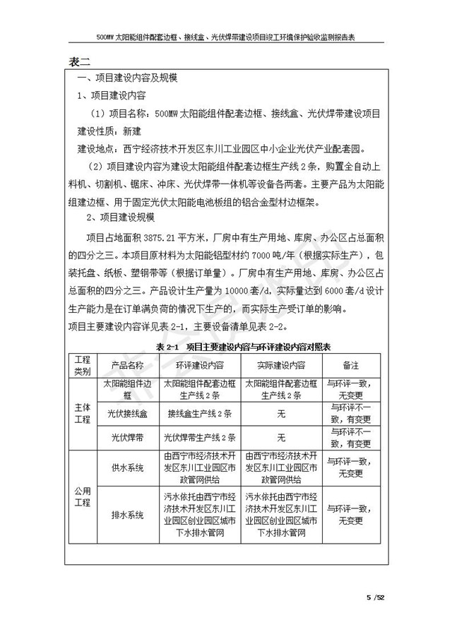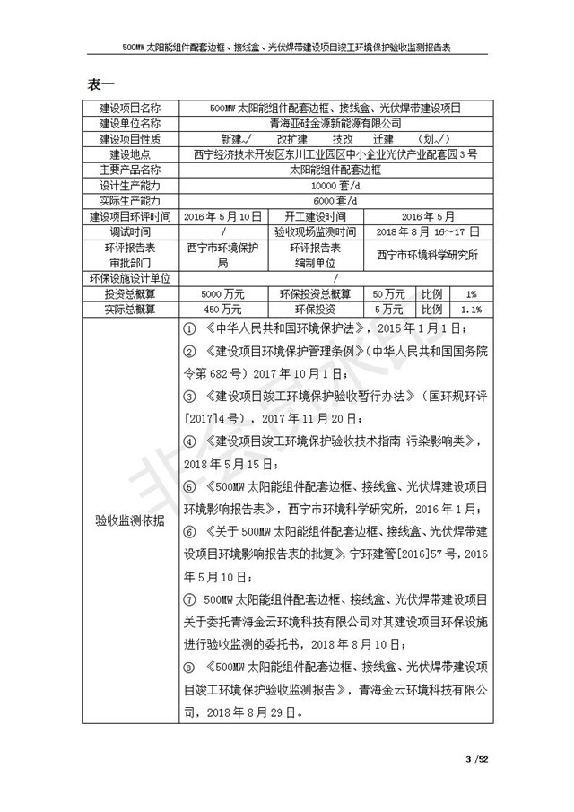 500MW太陽(yáng)能組件配套邊框、接線(xiàn)盒、光伏焊帶建設(shè)項(xiàng)目竣工環(huán)境保護(hù)驗(yàn)收監(jiān)測(cè)報(bào)告表公示