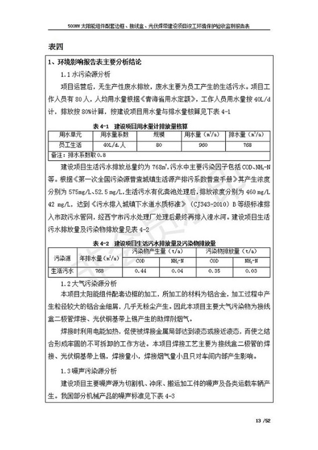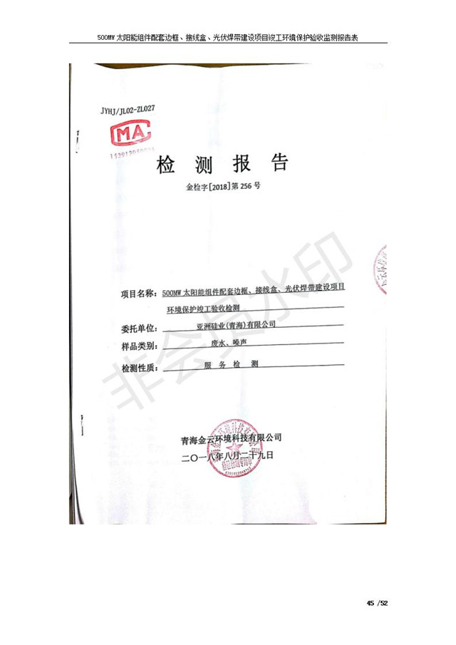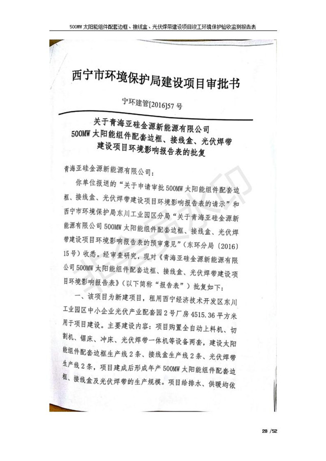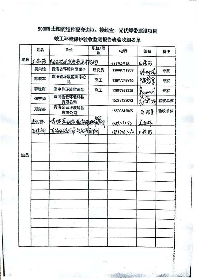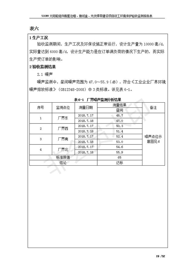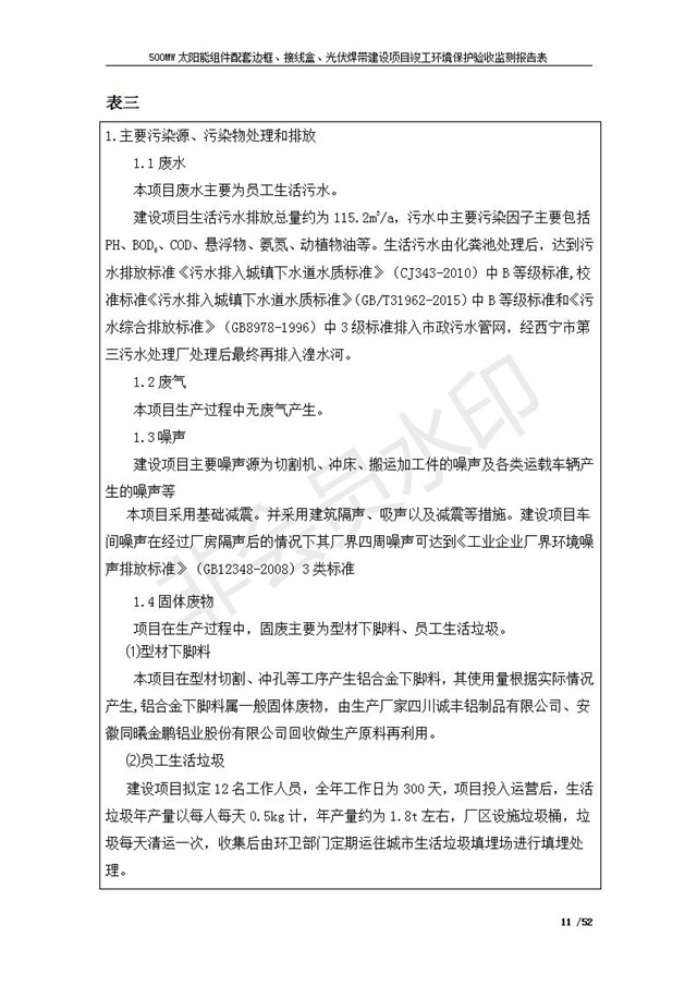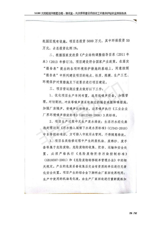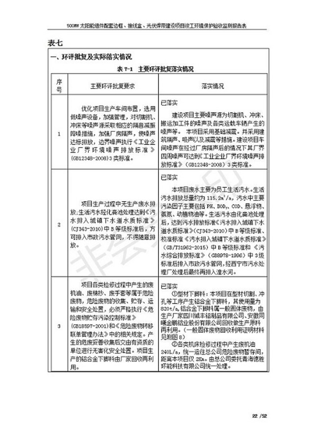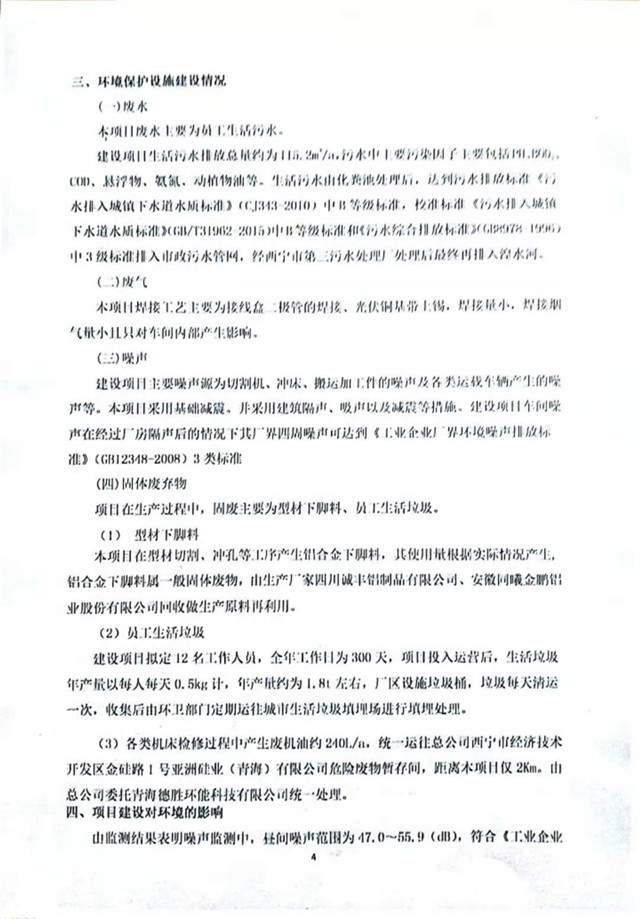 500MW太陽(yáng)能組件配套邊框、接線(xiàn)盒、光伏焊帶建設(shè)項(xiàng)目竣工環(huán)境保護(hù)驗(yàn)收監(jiān)測(cè)報(bào)告表公示
