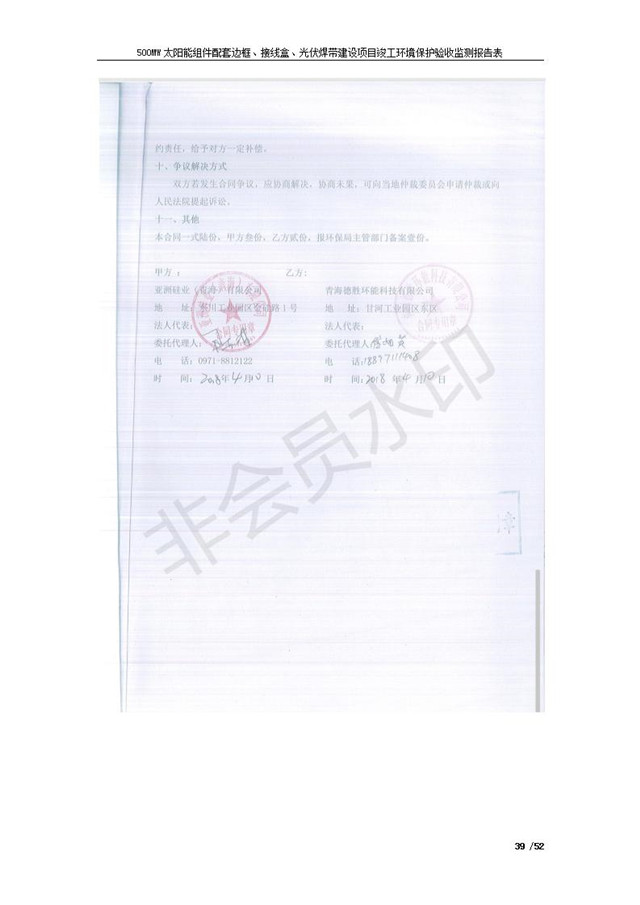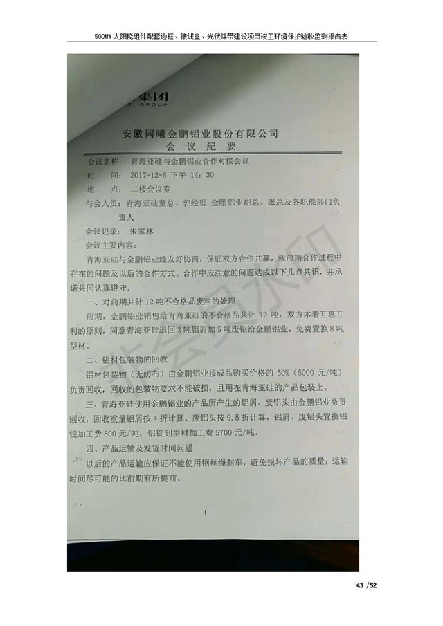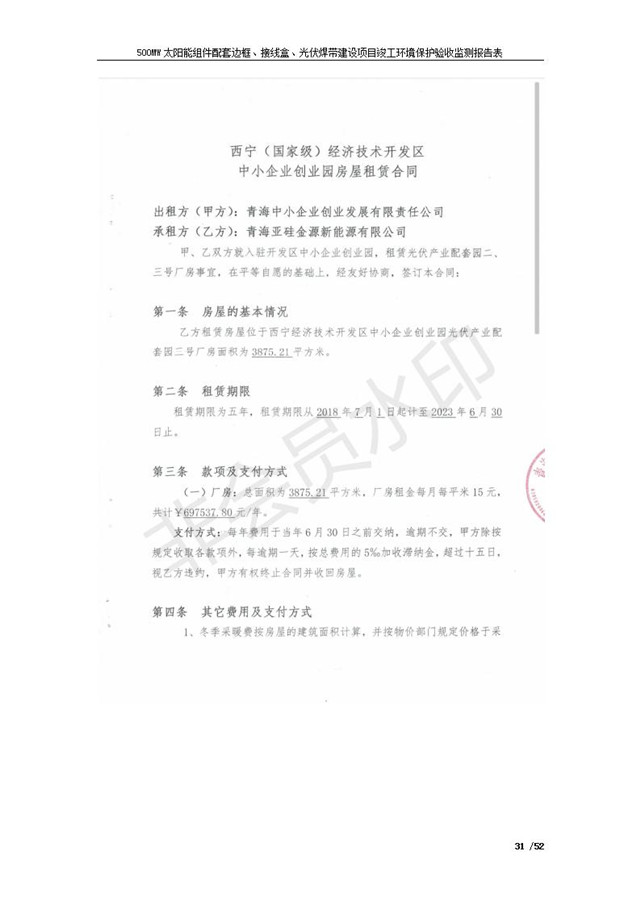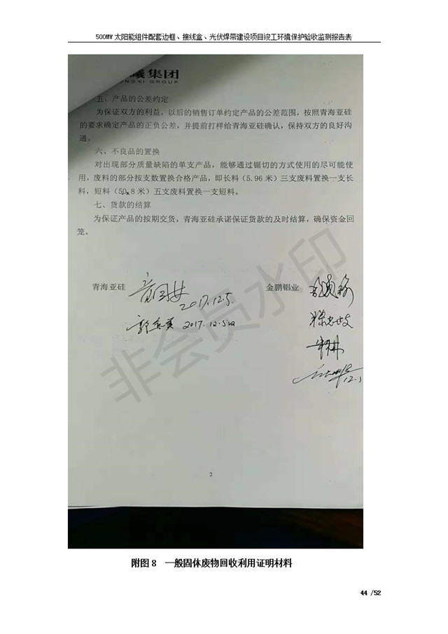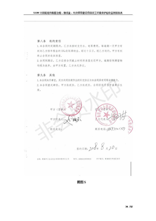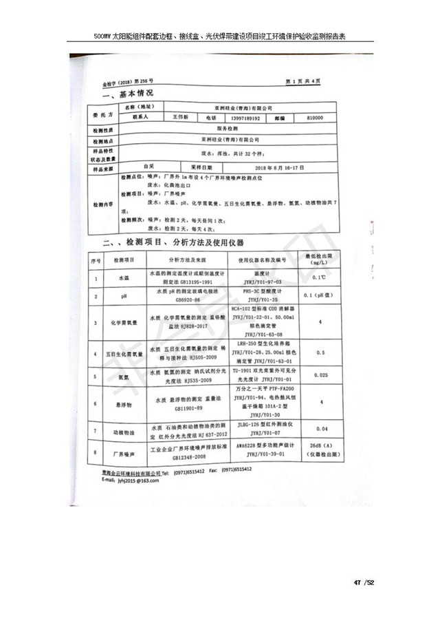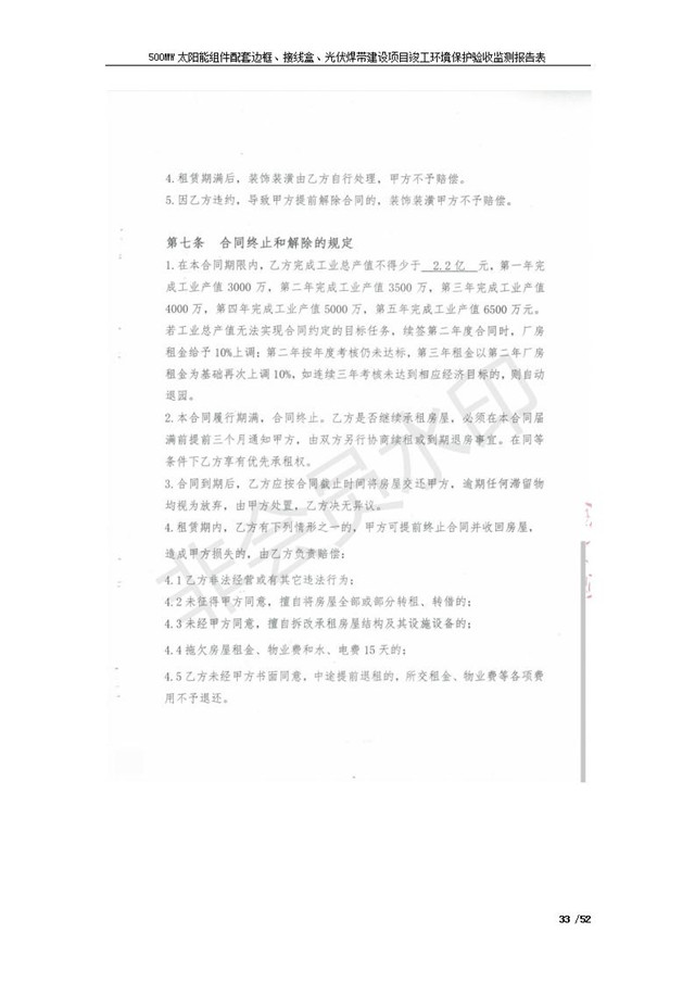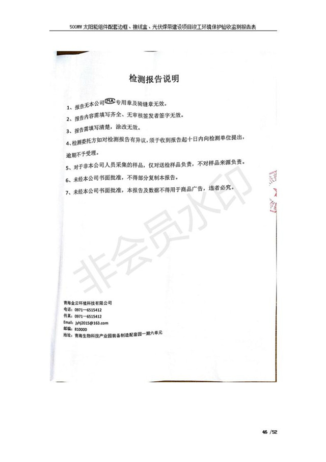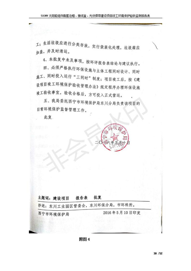 500MW太陽(yáng)能組件配套邊框、接線(xiàn)盒、光伏焊帶建設(shè)項(xiàng)目竣工環(huán)境保護(hù)驗(yàn)收監(jiān)測(cè)報(bào)告表公示