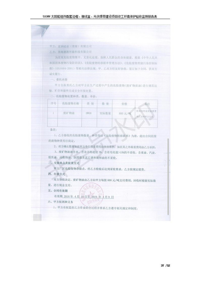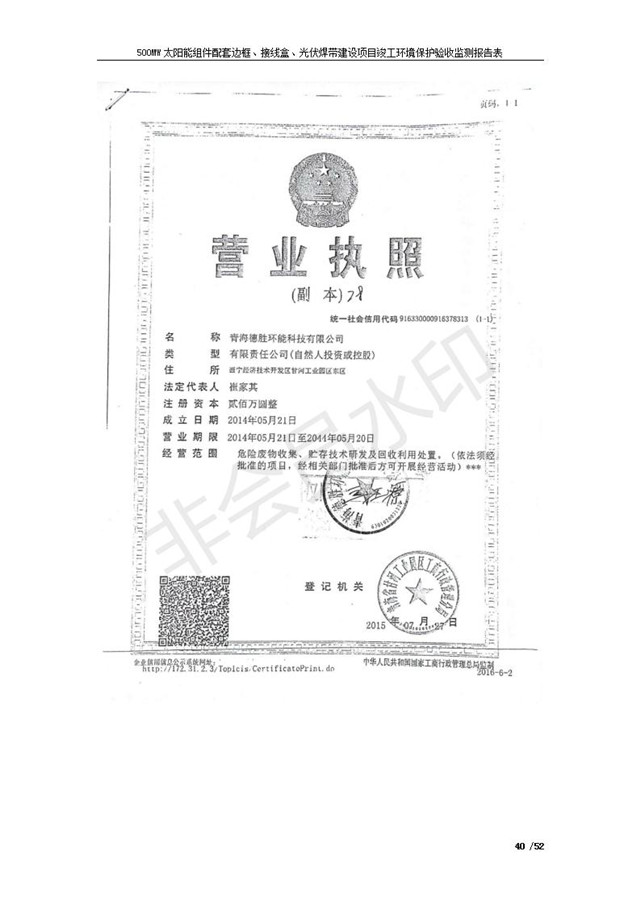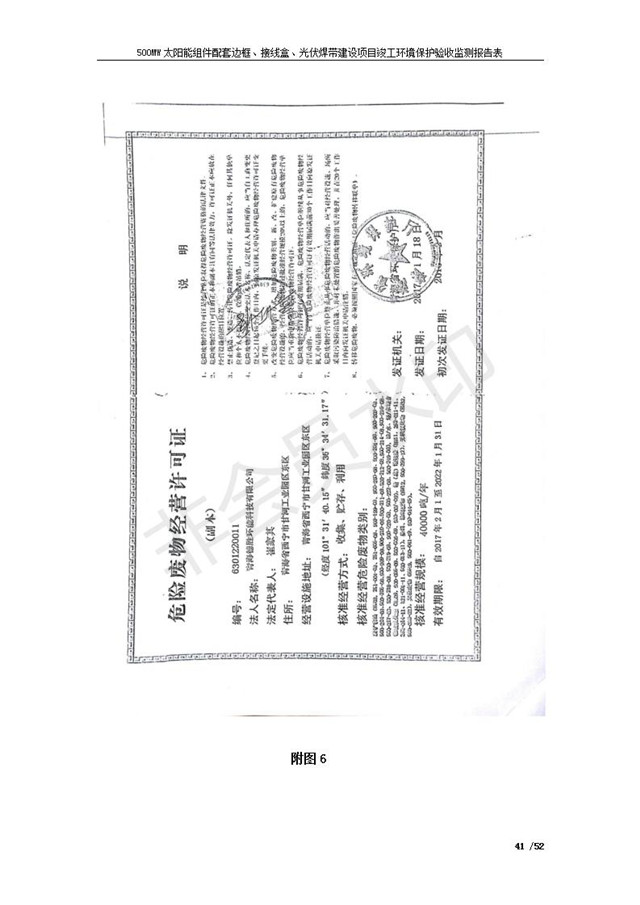500MW太陽(yáng)能組件配套邊框、接線(xiàn)盒、光伏焊帶建設(shè)項(xiàng)目竣工環(huán)境保護(hù)驗(yàn)收監(jiān)測(cè)報(bào)告表公示發(fā)布日期:(2018-11-16) 點(diǎn)擊次數(shù):2215 |