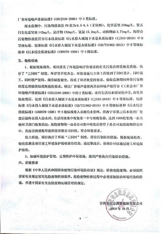 根據(jù)中華人民共和國(guó)國(guó)務(wù)院令第253號(hào)《建設(shè)項(xiàng)目環(huán)境保護(hù)管理?xiàng)l例》(中華人民共和國(guó)國(guó)務(wù)院令第682號(hào)《國(guó)務(wù)院關(guān)于修改〈建設(shè)項(xiàng)目環(huán)境保護(hù)管理?xiàng)l例〉的決定》和《建設(shè)項(xiàng)目竣工環(huán)境保護(hù)驗(yàn)收暫行辦法》,嚴(yán)格依照有關(guān)法律法規(guī),建設(shè)項(xiàng)目環(huán)境保護(hù)設(shè)施驗(yàn)收技術(shù)規(guī)范,本項(xiàng)目環(huán)評(píng)報(bào)告表和環(huán)保審批部門(mén)審批意見(jiàn)以及企業(yè)自行驗(yàn)收相關(guān)要求等對(duì)本項(xiàng)目進(jìn)行驗(yàn)收,本項(xiàng)目符合環(huán)保驗(yàn)收條件,可以通過(guò)環(huán)保驗(yàn)收。 現(xiàn)將本項(xiàng)目竣工環(huán)境保護(hù)驗(yàn)收情況進(jìn)行公開(kāi),并征求公眾意見(jiàn)。一、征求意見(jiàn)日期:自公示之日起20個(gè)工作日 二、征求意見(jiàn)期間,驗(yàn)收組接受反映公示的建設(shè)項(xiàng)目竣工環(huán)境保護(hù)驗(yàn)收情況和問(wèn)題的來(lái)信、來(lái)訪和來(lái)電。 三、聯(lián)系方式 聯(lián)系人:張工 電 話(huà):15297122093 通訊地址:青海省西寧市城北區(qū)經(jīng)四路創(chuàng)新創(chuàng)業(yè)大廈22號(hào)