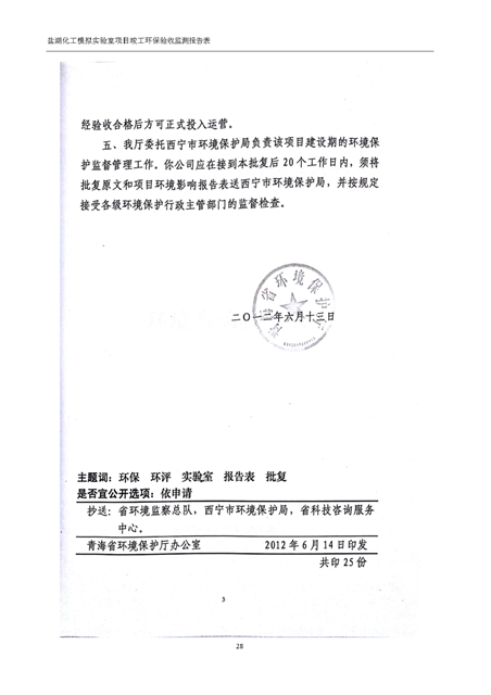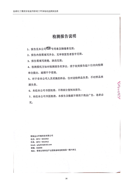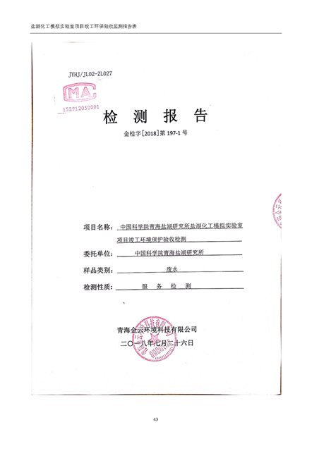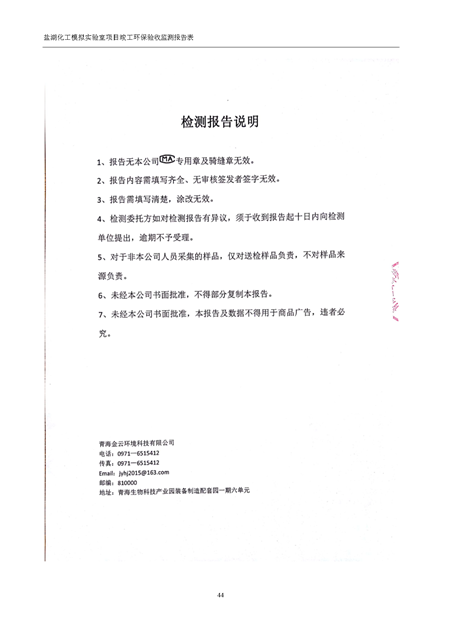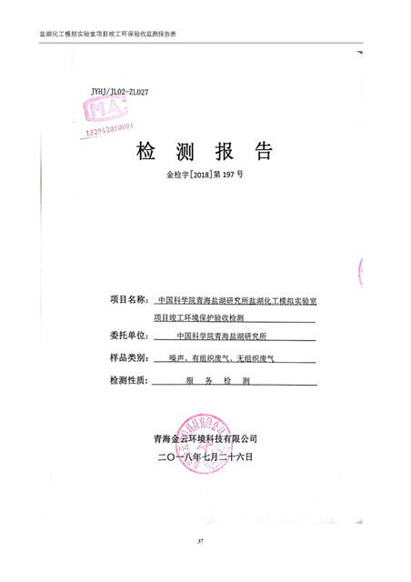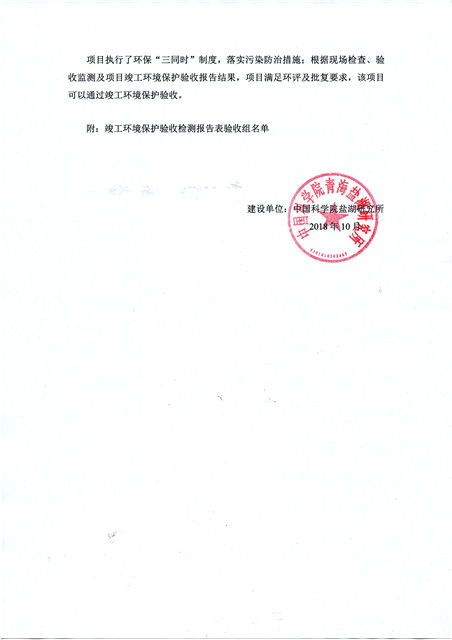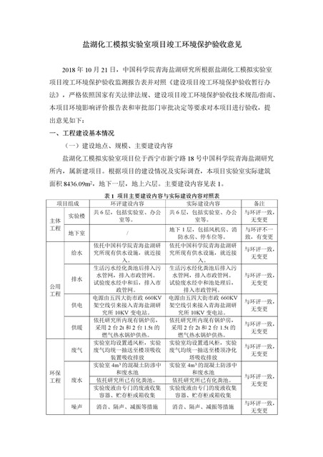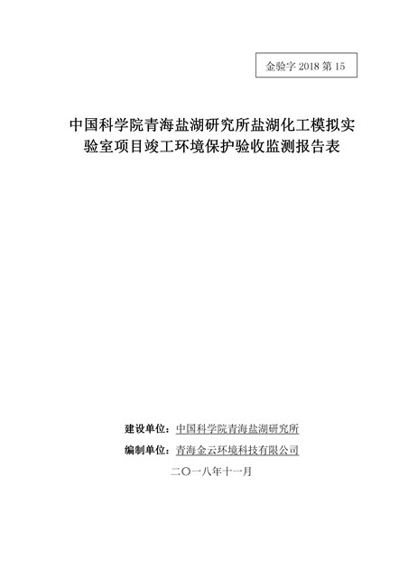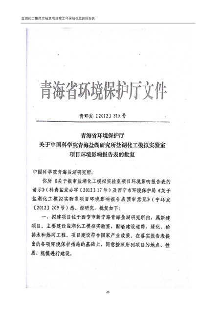 中國(guó)科學(xué)院青海鹽湖研究所鹽湖化工模擬實(shí)驗(yàn)室項(xiàng)目竣工環(huán)境保護(hù)驗(yàn)收監(jiān)測(cè)報(bào)告表公示發(fā)布日期:(2018-11-23) 點(diǎn)擊次數(shù):2289 |
