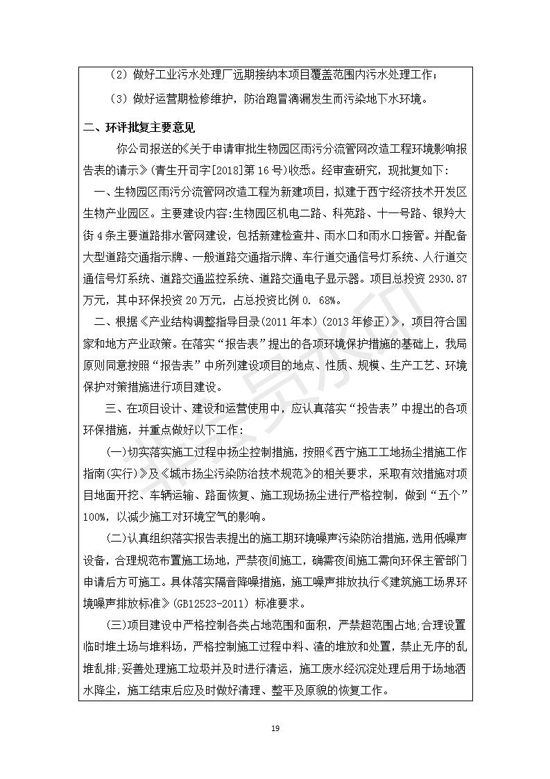 生物園區(qū)雨污分流管網(wǎng)改造工程竣工環(huán)境保護(hù)驗(yàn)收調(diào)查表 公示發(fā)布日期:(2018-12-21) 點(diǎn)擊次數(shù):2858 |