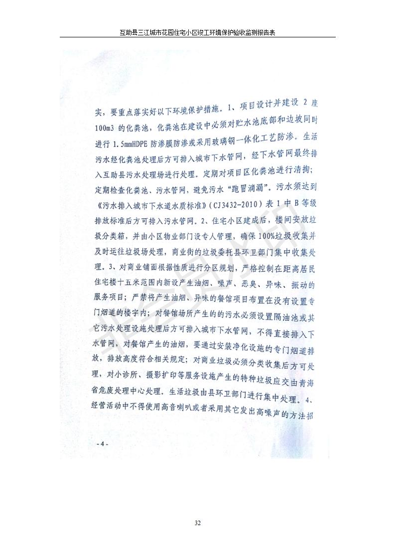 根據(jù)中華人民共和國國務(wù)院令第682號《國務(wù)院關(guān)于修改〈建設(shè)項目環(huán)境保護管理條例〉的決定》和《建設(shè)項目竣工環(huán)境保護驗收暫行辦法》(國務(wù)院令682號),互助縣三江城市花園住宅小區(qū)(包括竣工環(huán)境保護驗收監(jiān)測報告表和驗收意見)公示如下。 一、項目名稱: 互助縣三江城市花園住宅小區(qū)竣工環(huán)境保護驗收監(jiān)測報告表 二、地點:青海省海東市互助土族自治縣威遠鎮(zhèn)安定路與和諧路交匯處東南角 三、建設(shè)單位:青海三兄房地產(chǎn)開發(fā)有限公司 四、建設(shè)內(nèi)容:項目規(guī)劃用地面積26670.0m2,實際占地面積26670.0m2,項目占地面積未發(fā)生變化,規(guī)劃設(shè)計建筑總面積76616.4m2,其中商業(yè)建筑面積8994m2。實際建筑總面積58639.64m2,其中商業(yè)建筑面積9894.27m2。 五、聯(lián)系人:張工 六、聯(lián)系電 話:0971-6515411 七、公示時間:二〇一九年六月五日至二〇一九年七月三日 公示期間,對上述公示內(nèi)容如有異議,請以書面形式反饋,個人須署真實姓名,單位須加蓋公章。