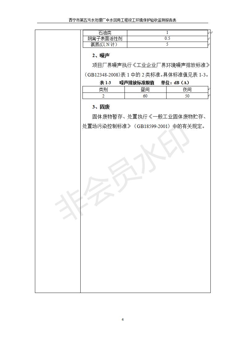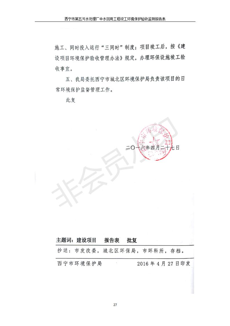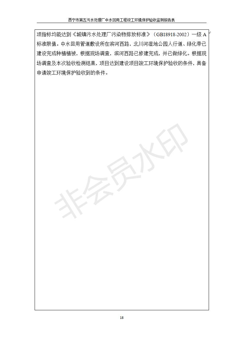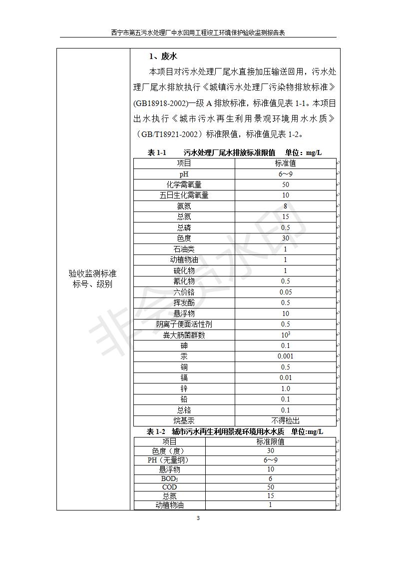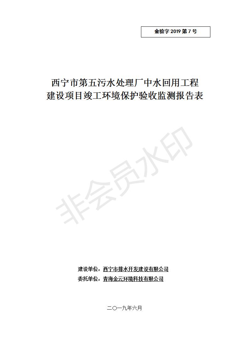 根據(jù)中華人民共和國國務(wù)院令第682號《國務(wù)院關(guān)于修改〈建設(shè)項目環(huán)境保護管理條例〉的決定》和《建設(shè)項目竣工環(huán)境保護驗收暫行辦法》(國務(wù)院令682號),西寧市第五污水處理廠中水回用工程建設(shè)項目(包括竣工環(huán)境保護驗收監(jiān)測報告表和驗收意見)公示如下。 一、項目名稱:西寧市第五污水處理廠中水回用工程建設(shè)項目 二、地點:西寧市城北區(qū)廿十里鋪雙蘇堡 三、建設(shè)單位:西寧市排水開發(fā)建設(shè)有限公司