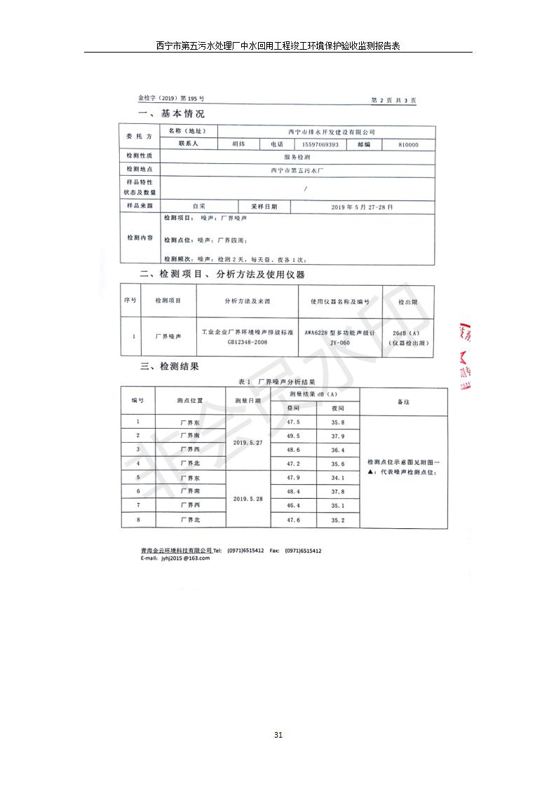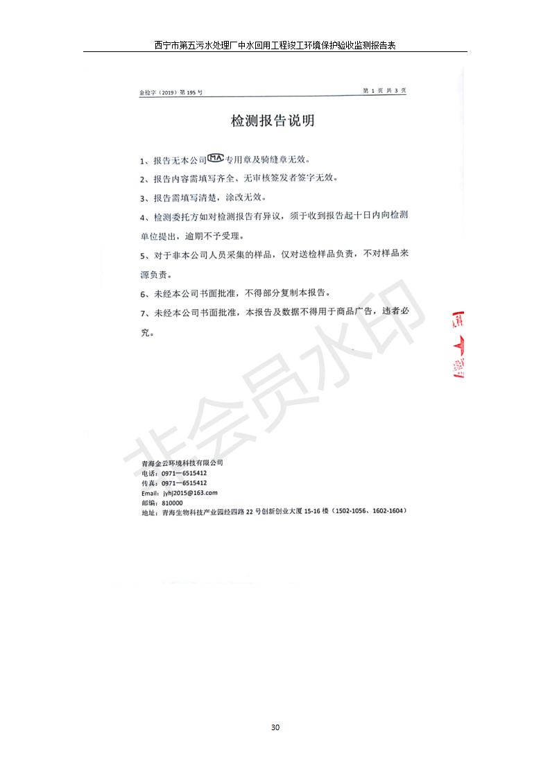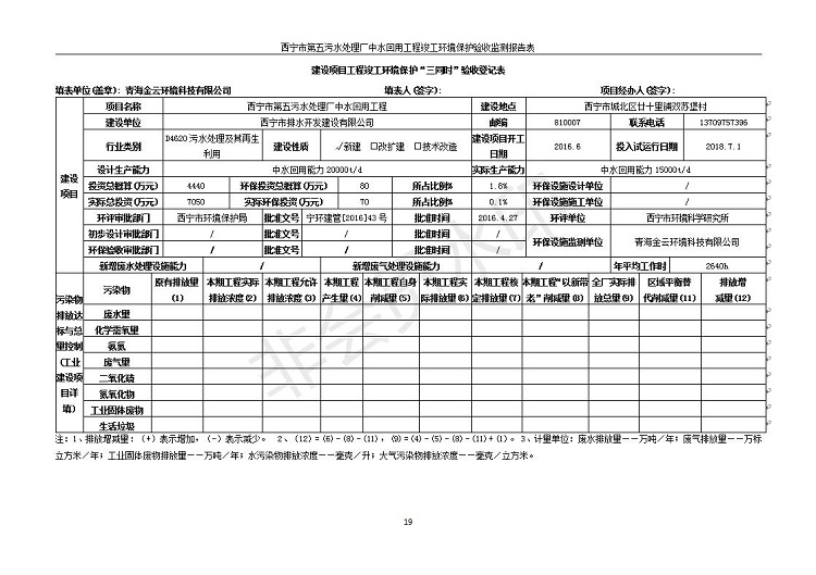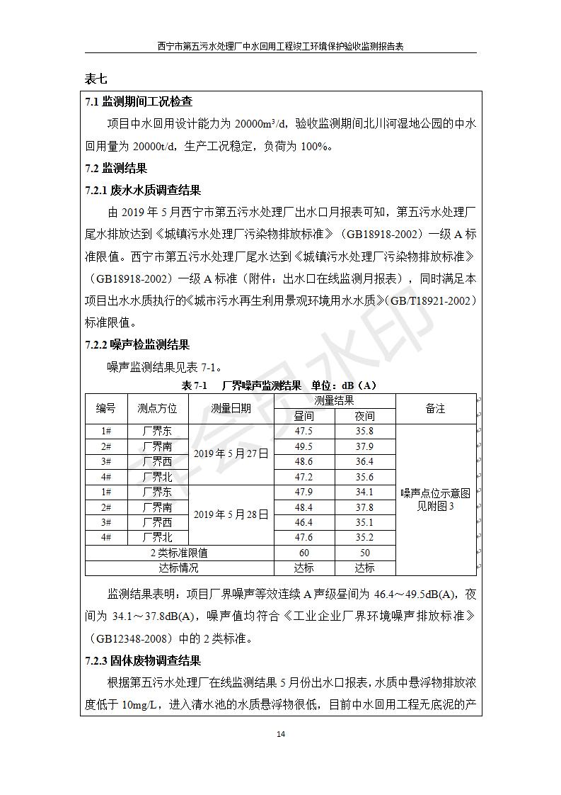西寧市第五污水處理廠中水回用工程建設(shè)項目竣工環(huán)境保護驗收監(jiān)測報告表公示發(fā)布日期:(2019-7-10) 點擊次數(shù):2459 |