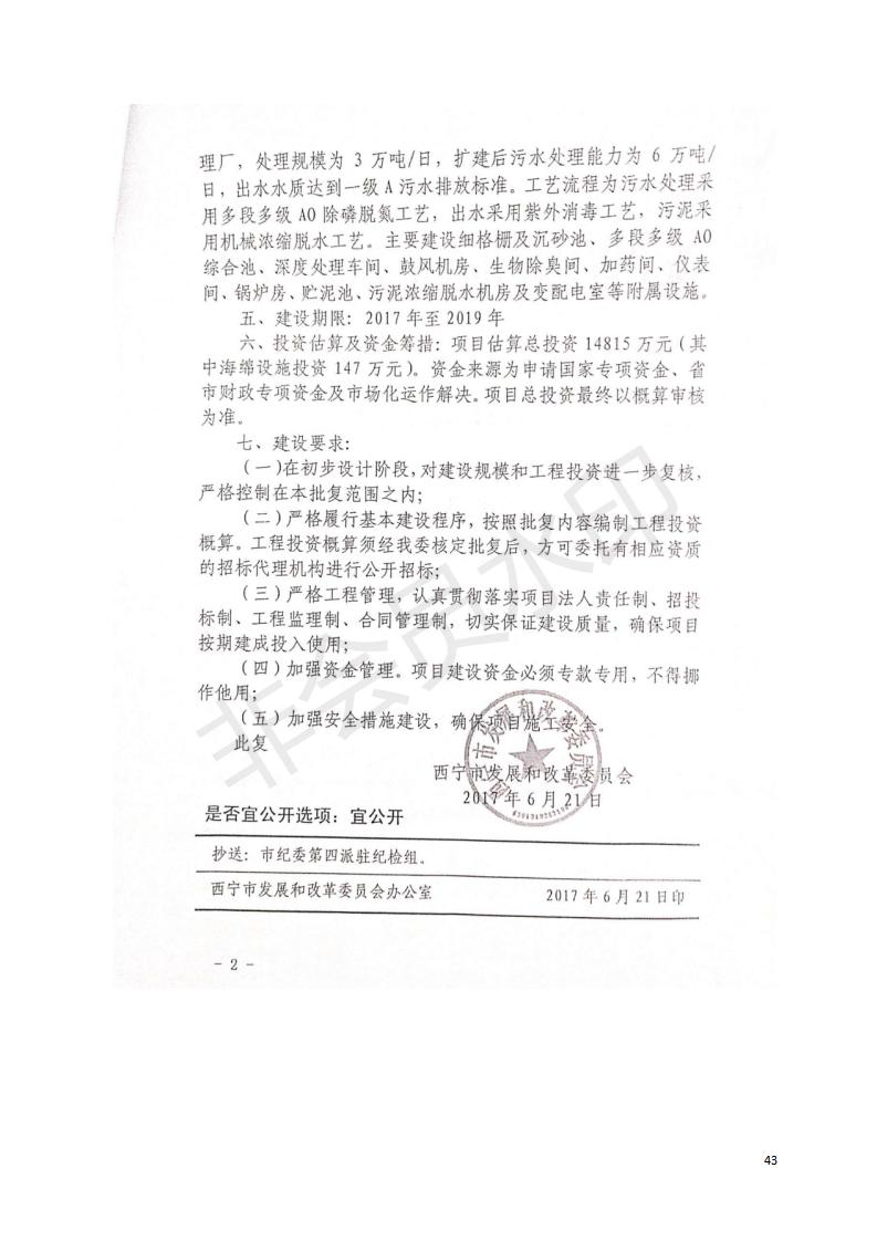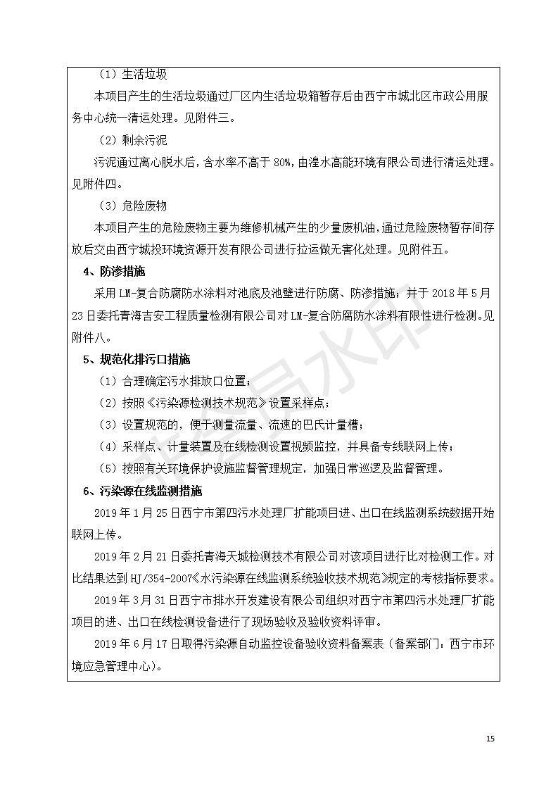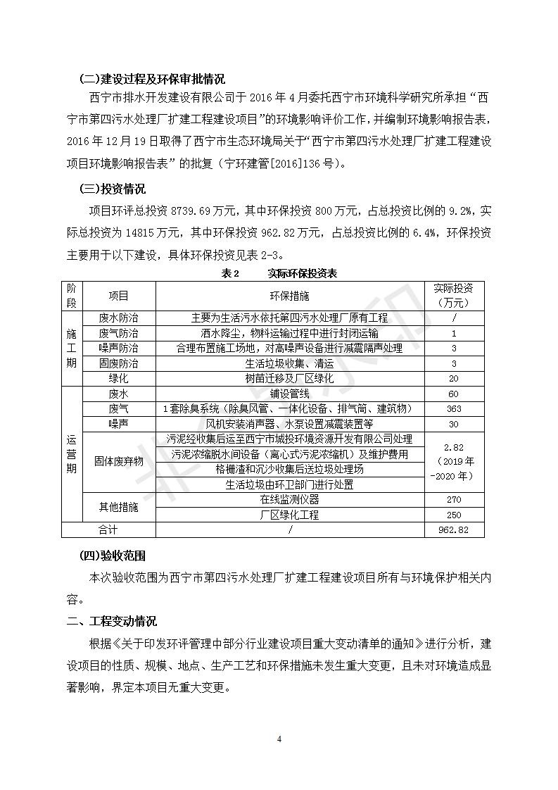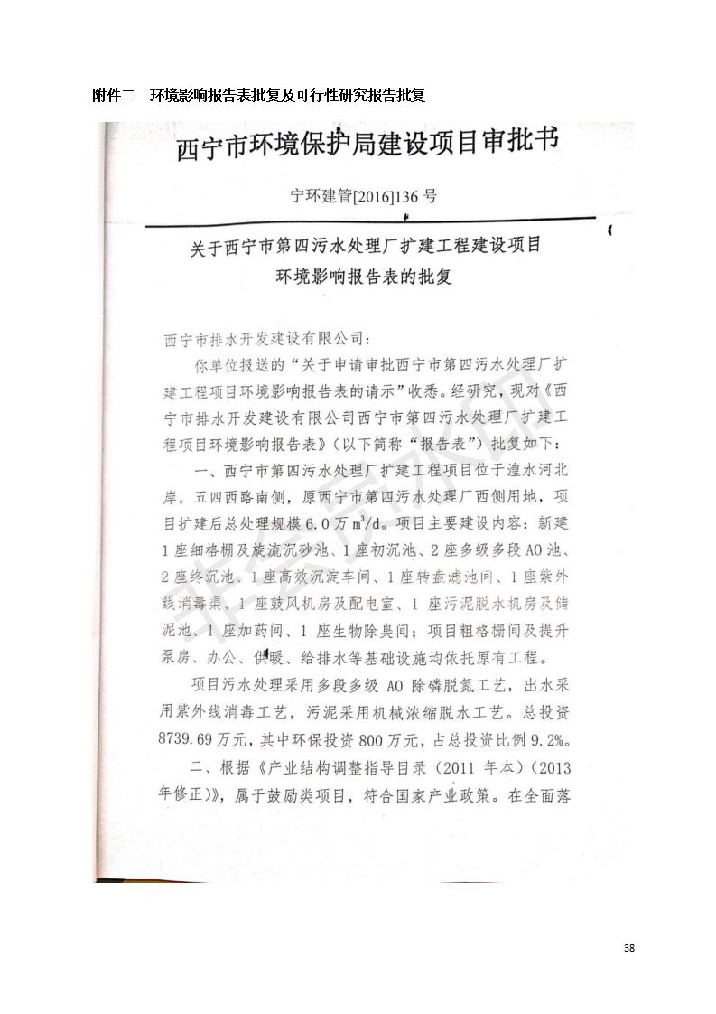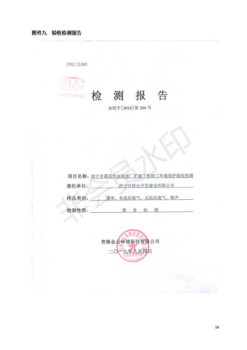 根據(jù)中華人民共和國國務(wù)院令第682號(hào)《國務(wù)院關(guān)于修改〈建設(shè)項(xiàng)目環(huán)境保護(hù)管理?xiàng)l例〉的決定》和《建設(shè)項(xiàng)目竣工環(huán)境保護(hù)驗(yàn)收暫行辦法》(國務(wù)院令682號(hào)),西寧市第四污水處理廠擴(kuò)建工程建設(shè)項(xiàng)目(包括竣工環(huán)境保護(hù)驗(yàn)收監(jiān)測報(bào)告表和驗(yàn)收意見)公示如下。 一、項(xiàng)目名稱:西寧市第四污水處理廠擴(kuò)建工程建設(shè)項(xiàng)目 二、地點(diǎn):五四西路南側(cè),原西寧市第四污水處理廠西側(cè)用地 三、建設(shè)單位:西寧市排水開發(fā)建設(shè)有限公司 四、建設(shè)內(nèi)容:第四污水處理廠擴(kuò)建工程五、聯(lián)系人:張工 六、聯(lián)系電 話:0971-6515411 七、公示時(shí)間:二〇一九年九月十七日至二〇一九年十月十八日公示期間,對上述公示內(nèi)容如有異議,請以書面形式反饋,個(gè)人須署真實(shí)姓名,單位須加蓋公章。