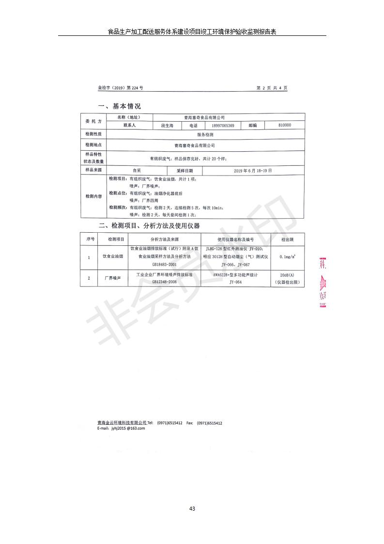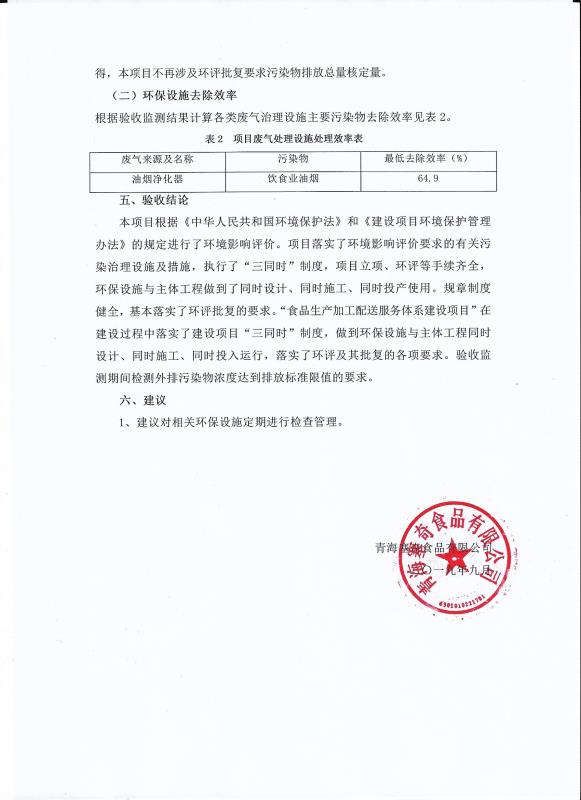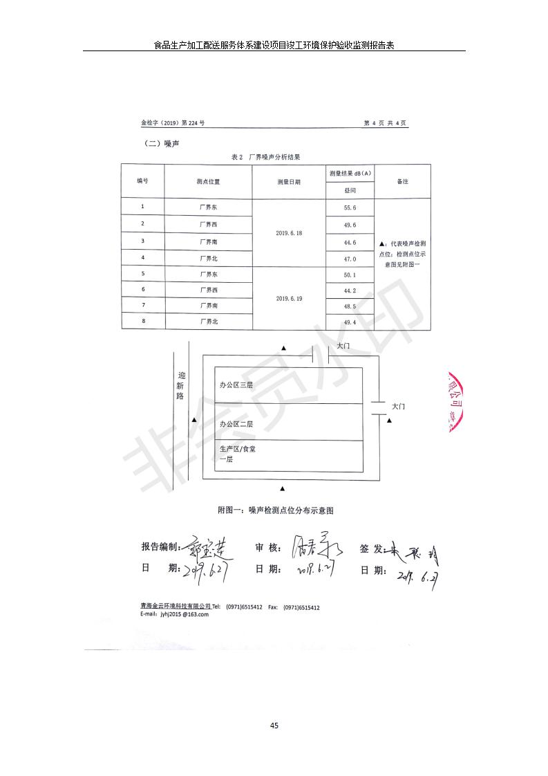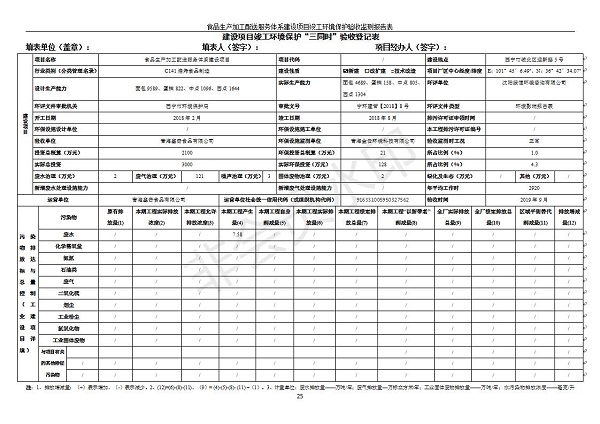 根據(jù)中華人民共和國國務(wù)院令第682號《國務(wù)院關(guān)于修改〈建設(shè)項(xiàng)目環(huán)境保護(hù)管理?xiàng)l例〉的決定》和《建設(shè)項(xiàng)目竣工環(huán)境保護(hù)驗(yàn)收暫行辦法》(國務(wù)院令682號),食品生產(chǎn)加工配送服務(wù)體系建設(shè)項(xiàng)目(包括竣工環(huán)境保護(hù)驗(yàn)收監(jiān)測報告表和驗(yàn)收意見)公示如下。 一、項(xiàng)目名稱:食品生產(chǎn)加工配送服務(wù)體系建設(shè)項(xiàng)目 二、地點(diǎn):西寧市城北區(qū)生物園區(qū)迎新路5號食品保健品集聚區(qū)1號樓 六、聯(lián)系電 話:0971-6515411 七、公示時間:二〇一九年九月二十日至二〇一九年十月二十二日 公示期間,對上述公示內(nèi)容如有異議,請以書面形式反饋,個人須署真實(shí)姓名,單位須加蓋公章。
