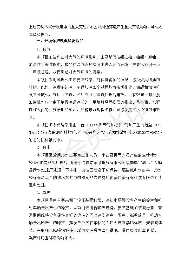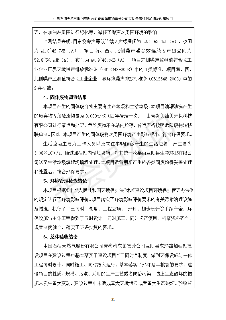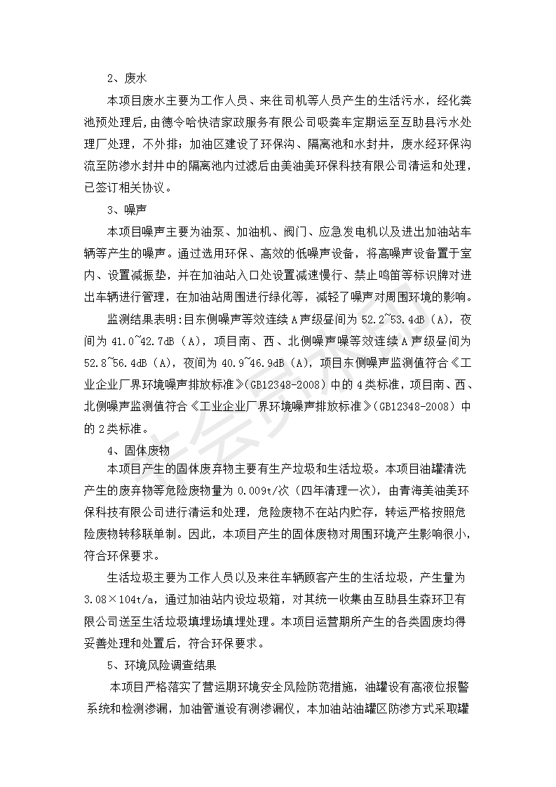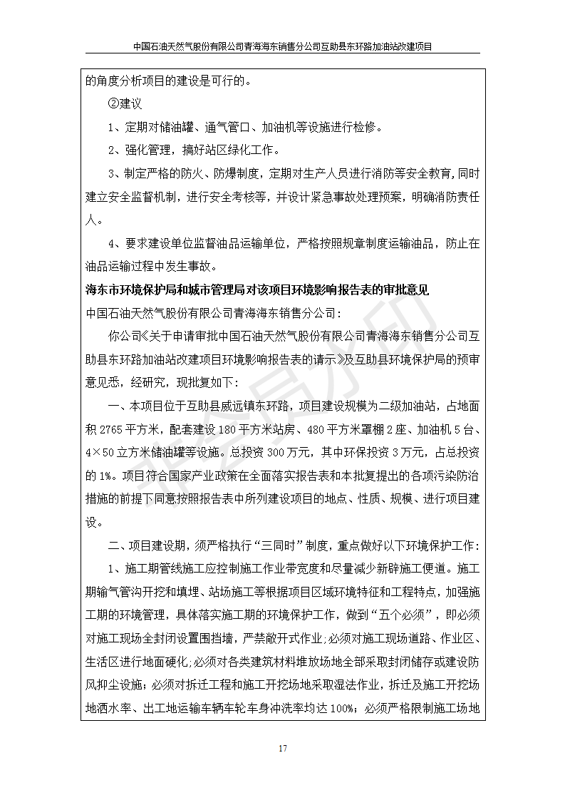 根據(jù)中華人民共和國國務院令第682號《國務院關于修改〈建設項目環(huán)境保護管理條例〉的決定》和《建設項目竣工環(huán)境保護驗收暫行辦法》(國務院令682號),互助縣東環(huán)路加油站改建項目(包括竣工環(huán)境保護驗收監(jiān)測報告表和驗收意見)公示如下。 一、項目名稱:互助縣東環(huán)路加油站改建項目 二、地點:青海省海東市互助縣東環(huán)路 六、聯(lián)系電話:0971-6515411 七、公示時間:二〇一九年九月二十七日至二〇一九年十月二十九日 公示期間,對上述公示內(nèi)容如有異議,請以書面形式反饋,個人須署真實姓名,單位須加蓋公章。