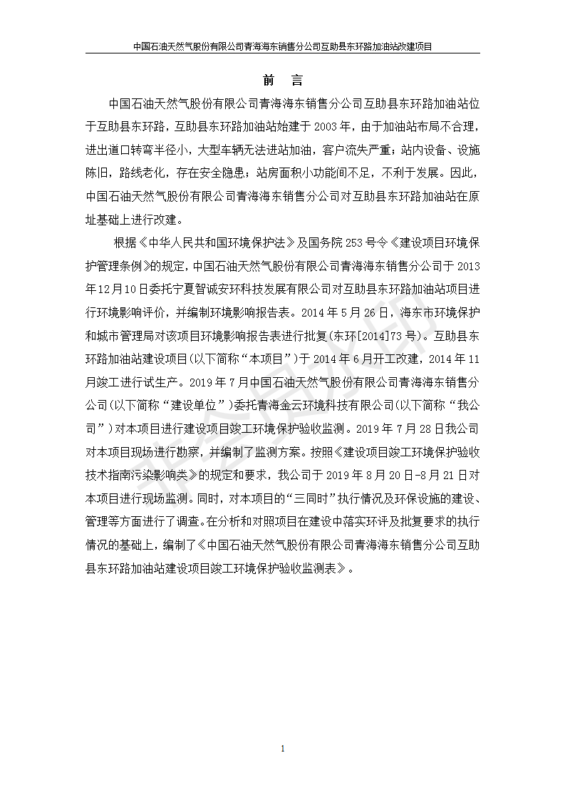 | 上一篇:互助縣東和加油站原址擴建項目 竣工環(huán)境保護驗收監(jiān)測報告表公示 | 下一篇:互助縣沙塘川加油站建設項目竣工環(huán)境保護驗收監(jiān)測報告表 |