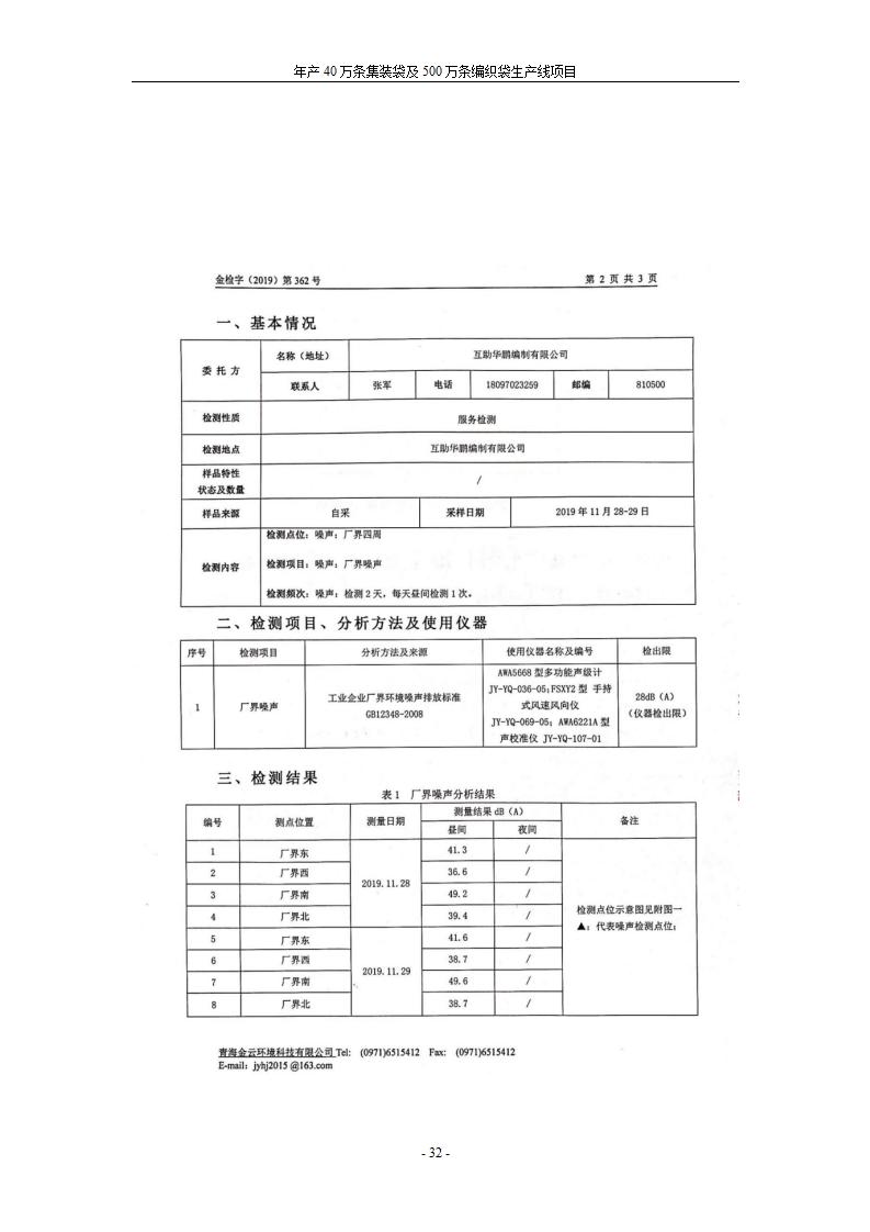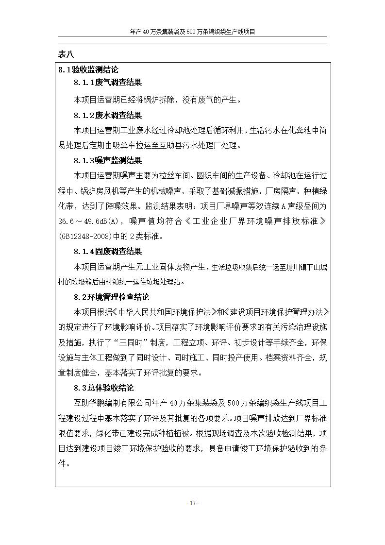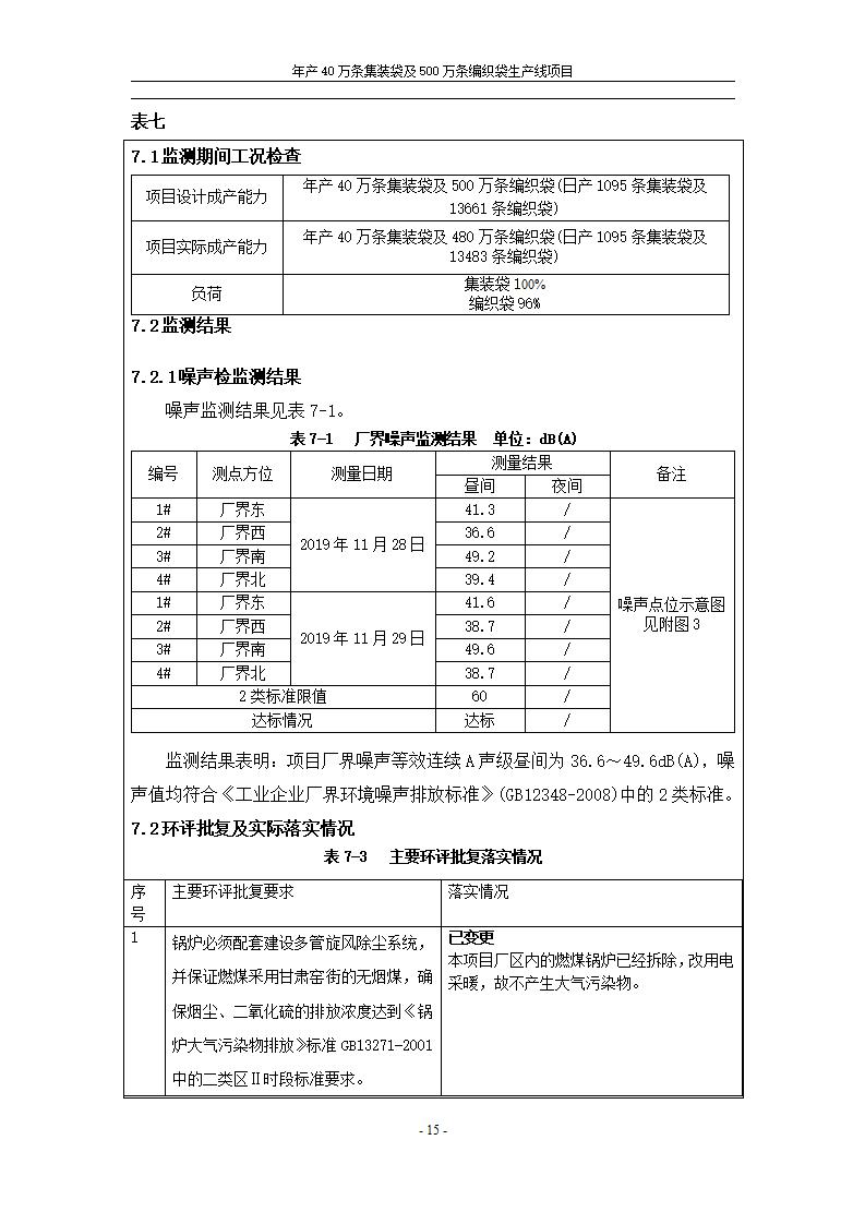 年產(chǎn)40萬條集裝袋及500萬條編織袋生產(chǎn)線項(xiàng)目竣工環(huán)境保護(hù)驗(yàn)收監(jiān)測報(bào)告表公示發(fā)布日期:(2020-1-13) 點(diǎn)擊次數(shù):2614 |
