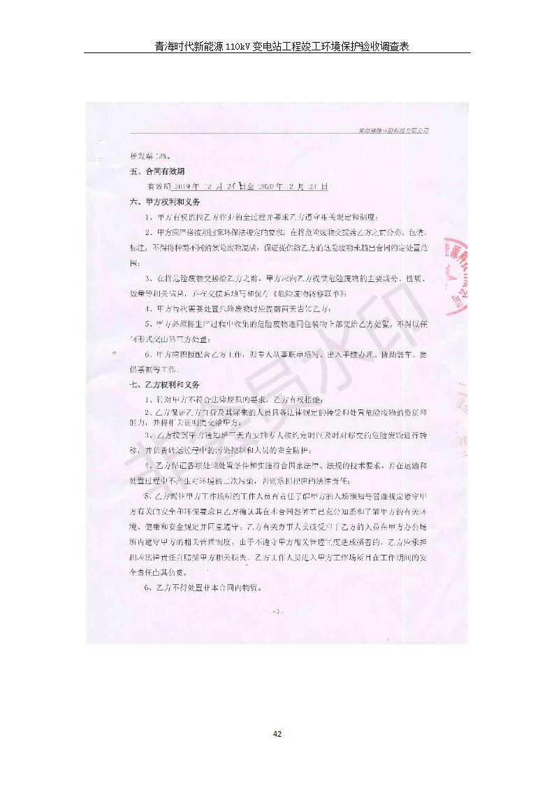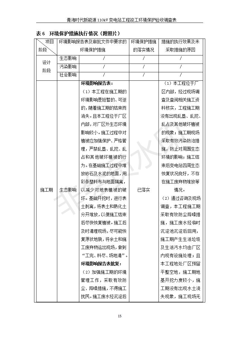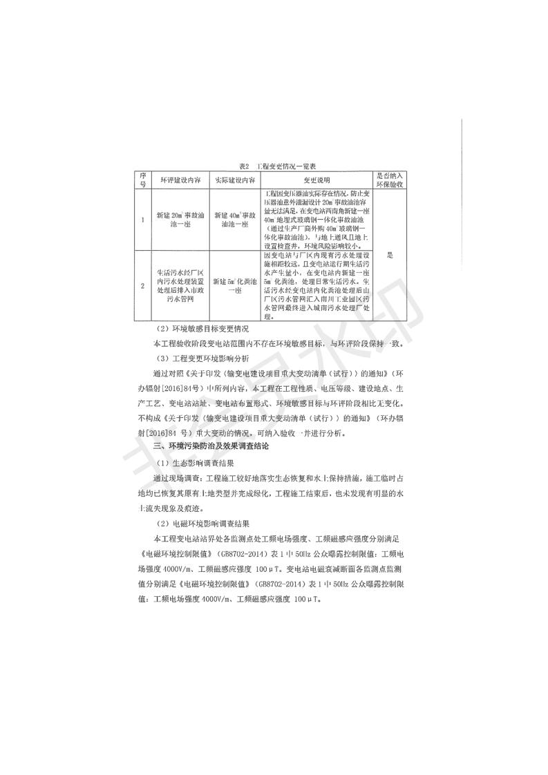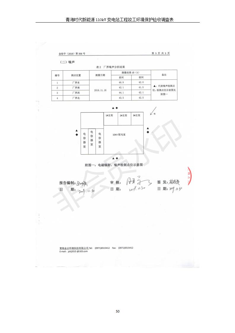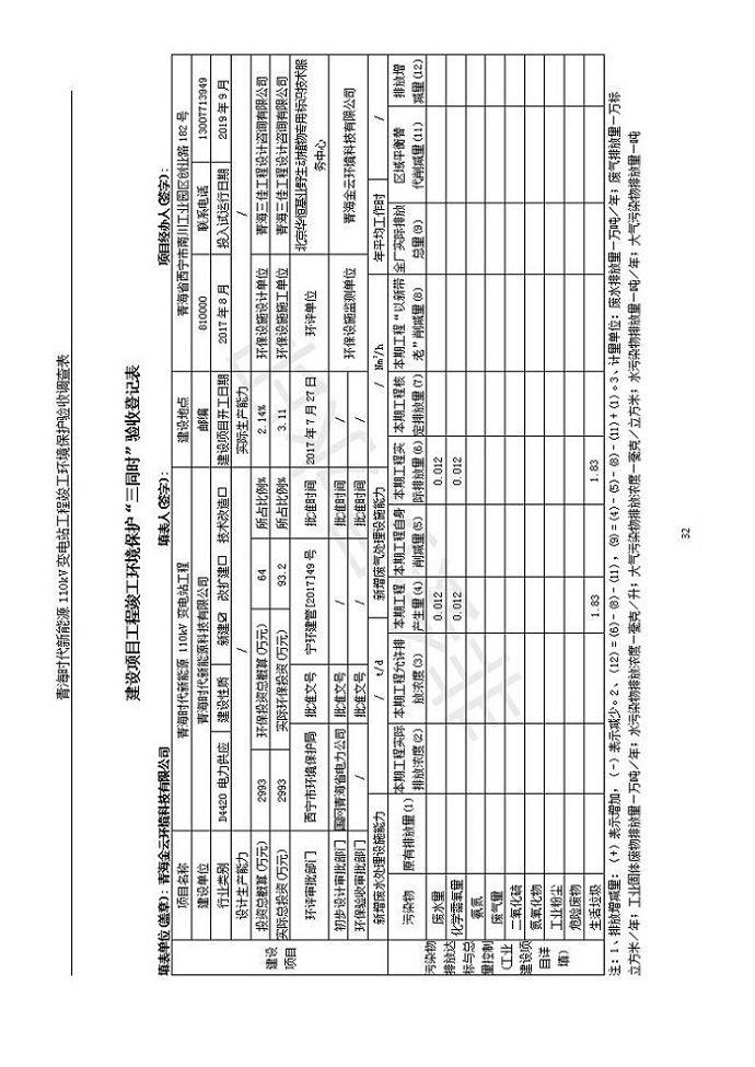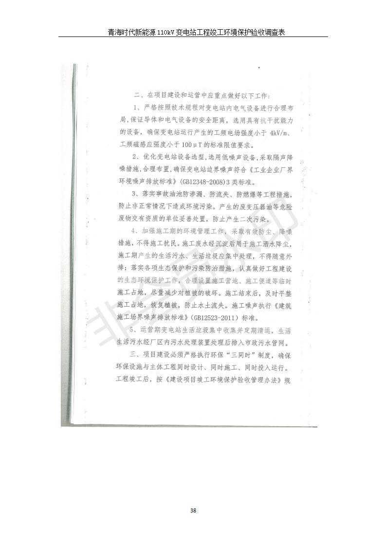 根據(jù)中華人民共和國國務院令第682號《國務院關(guān)于修改〈建設項目環(huán)境保護管理條例〉的決定》和《建設項目竣工環(huán)境保護驗收暫行辦法》(國務院令682號),青海時代新能源110kV變電站工程(包括竣工環(huán)境保護驗收調(diào)查表和驗收意見)公示如下。 一、項目名稱:青海時代新能源110kV變電站工程 二、地點:青海省西寧市南川工業(yè)園區(qū)創(chuàng)業(yè)路182號青海時代新能源科技有限公司廠區(qū)內(nèi) 三、建設單位:青海時代新能源科技有限公司 四、建設內(nèi)容:青海時代新能源 110kV 變電站采用全戶內(nèi)布置方式,依據(jù)環(huán)評報告及批復文件,經(jīng)現(xiàn)場踏勘本工程建設只包含變電站建設部分,輸電線路由南川工業(yè)園區(qū)管委會負責建設,輸電線路不屬于本次驗收調(diào)查范圍。工程本期規(guī)模2×31.5MVA,電壓等級為110/10kV。變電站 110kV 出線間隔最終2回,本期建設出線間隔2回;10kV最終電纜出線8回,本期電纜出線6回。 五、聯(lián)系人:張工 六、聯(lián)系電話:0971-6515411 七、公示時間:二〇二〇年一月十四日至二〇二〇年二月十三日 公示期間,對上述公示內(nèi)容如有異議,請以書面形式反饋,個人須署真實姓名,單位須加蓋公章。