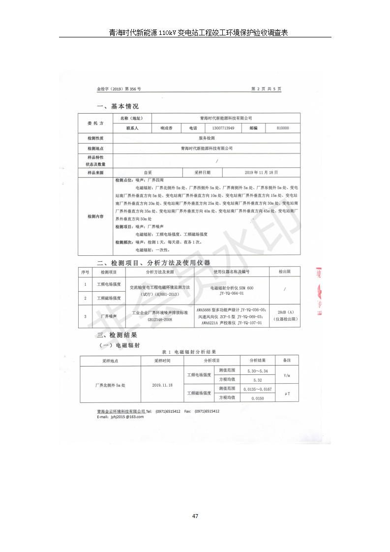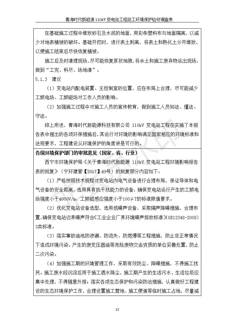 青海時代新能源110kV變電站工程竣工環(huán)境保護驗收調(diào)查表公示發(fā)布日期:(2020-1-14) 點擊次數(shù):2828 |