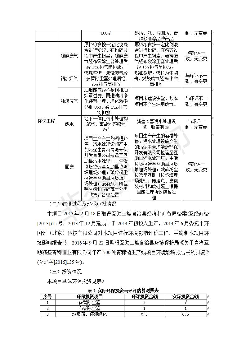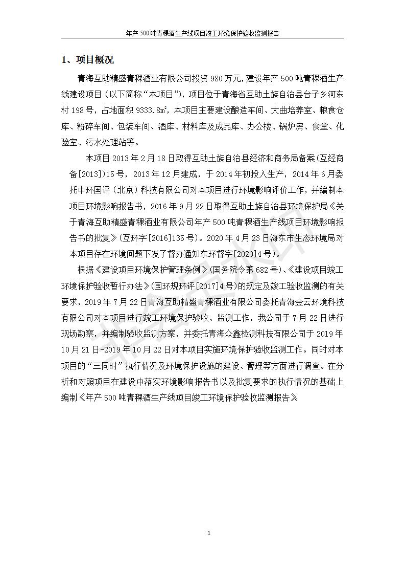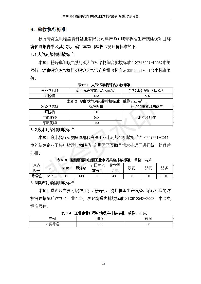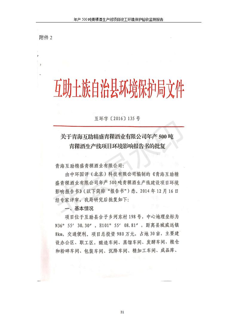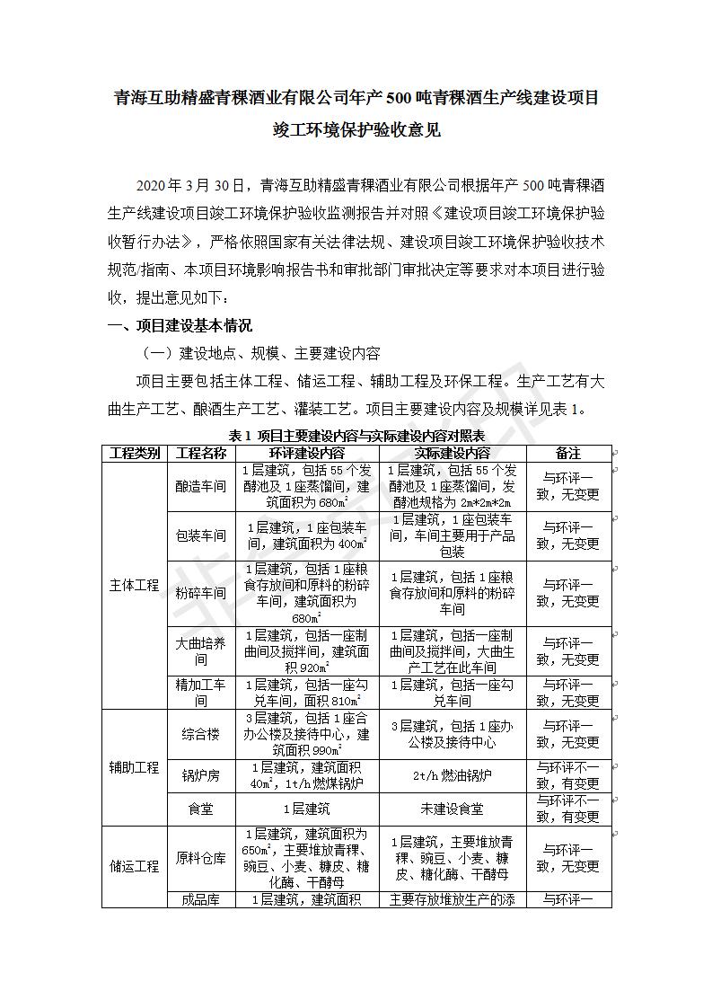 根據(jù)中華人民共和國(guó)國(guó)務(wù)院令第682號(hào)《國(guó)務(wù)院關(guān)于修改〈建設(shè)項(xiàng)目環(huán)境保護(hù)管理?xiàng)l例〉的決定》和《建設(shè)項(xiàng)目竣工環(huán)境保護(hù)驗(yàn)收暫行辦法》(國(guó)務(wù)院令682號(hào)),綜合檢測(cè)實(shí)驗(yàn)室建設(shè)項(xiàng)目(包括竣工環(huán)境保護(hù)驗(yàn)收監(jiān)測(cè)報(bào)告表和驗(yàn)收意見(jiàn))公示如下。 一、項(xiàng)目名稱:青海互助精盛青稞酒業(yè)有限公司年產(chǎn)500噸青稞酒業(yè)生產(chǎn)線建設(shè)項(xiàng)目 二、地點(diǎn):青海省海東市互助土族自治縣臺(tái)子鄉(xiāng)河?xùn)|村198號(hào)