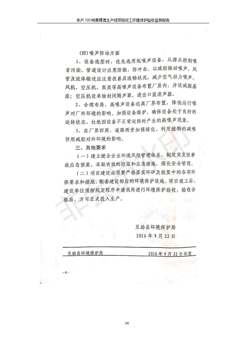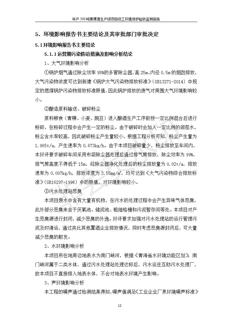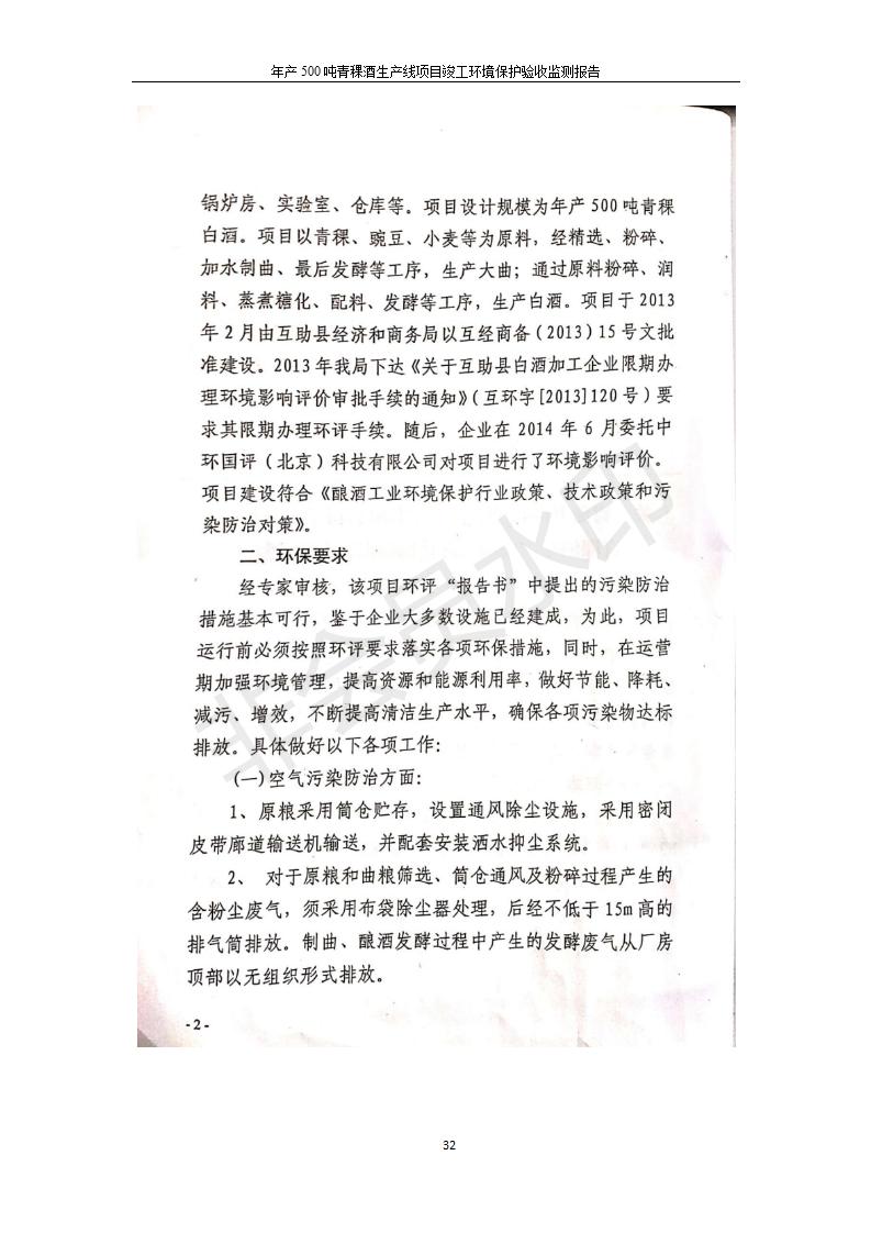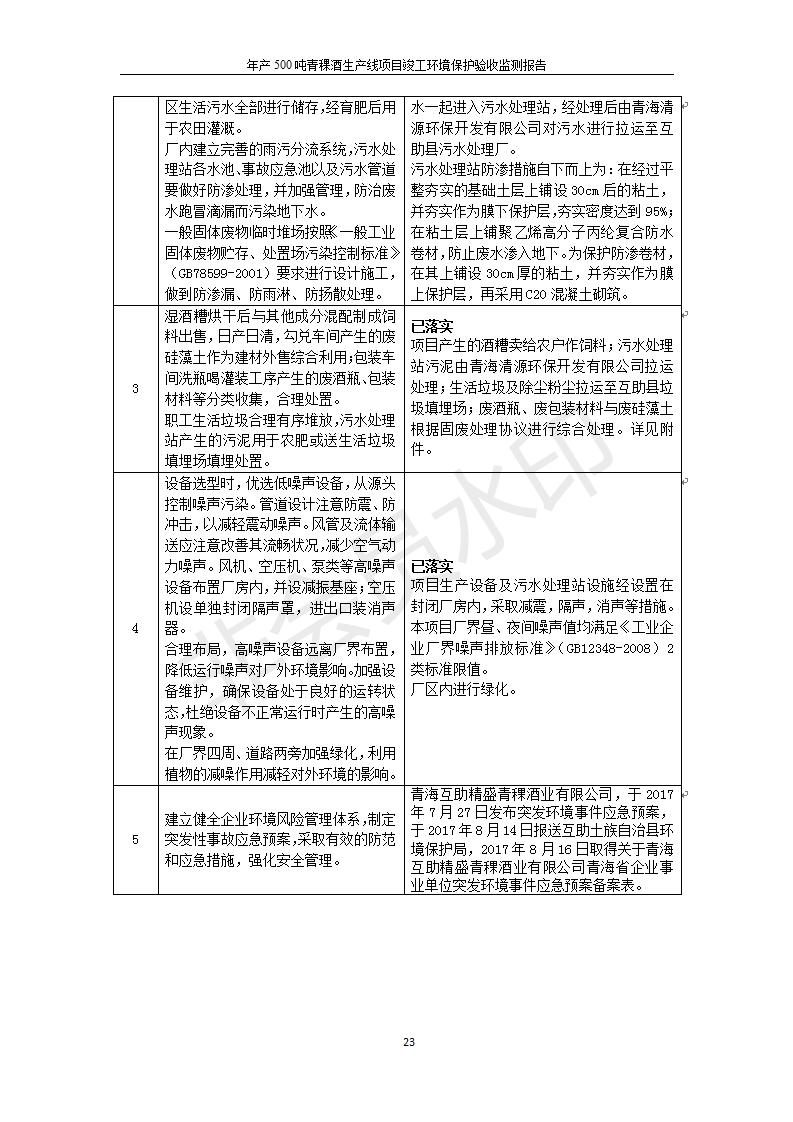 根據(jù)中華人民共和國(guó)國(guó)務(wù)院令第682號(hào)《國(guó)務(wù)院關(guān)于修改〈建設(shè)項(xiàng)目環(huán)境保護(hù)管理?xiàng)l例〉的決定》和《建設(shè)項(xiàng)目竣工環(huán)境保護(hù)驗(yàn)收暫行辦法》(國(guó)務(wù)院令682號(hào)),綜合檢測(cè)實(shí)驗(yàn)室建設(shè)項(xiàng)目(包括竣工環(huán)境保護(hù)驗(yàn)收監(jiān)測(cè)報(bào)告表和驗(yàn)收意見(jiàn))公示如下。 一、項(xiàng)目名稱:青海互助精盛青稞酒業(yè)有限公司年產(chǎn)500噸青稞酒業(yè)生產(chǎn)線建設(shè)項(xiàng)目 二、地點(diǎn):青海省海東市互助土族自治縣臺(tái)子鄉(xiāng)河?xùn)|村198號(hào)