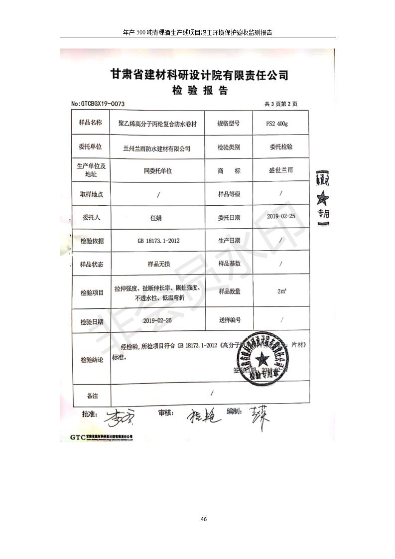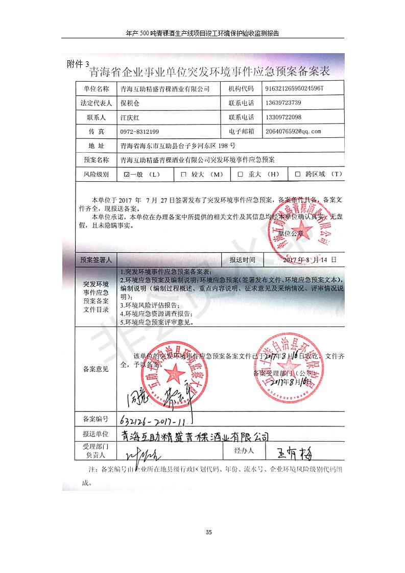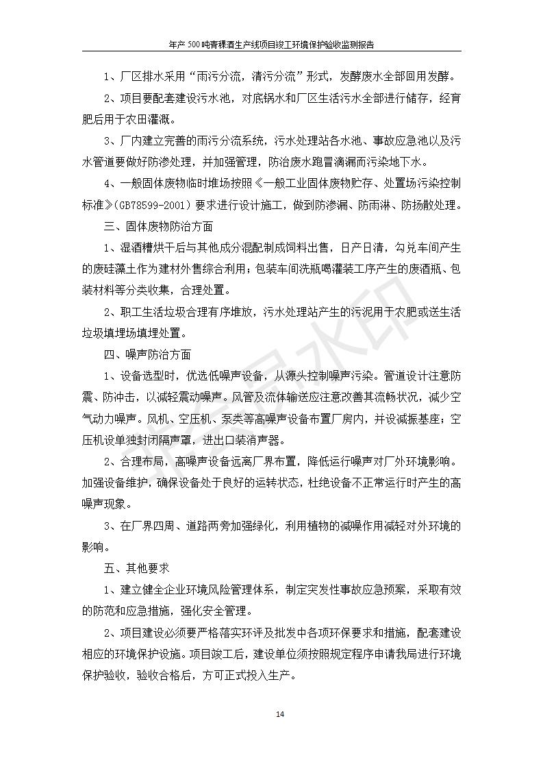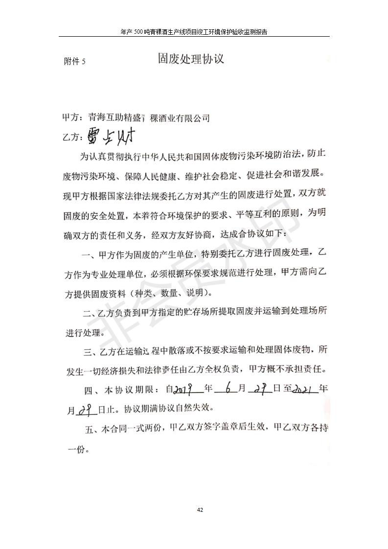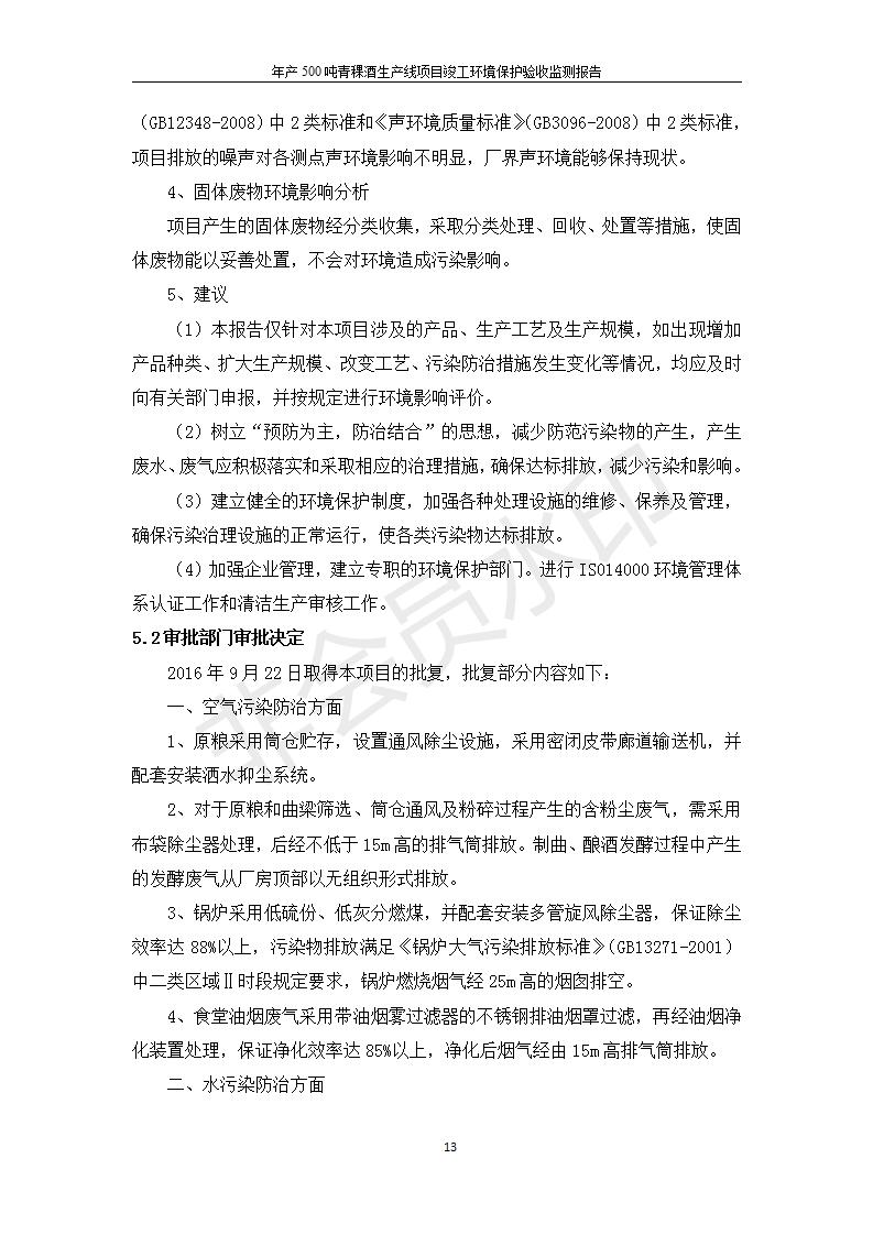 根據(jù)中華人民共和國(guó)國(guó)務(wù)院令第682號(hào)《國(guó)務(wù)院關(guān)于修改〈建設(shè)項(xiàng)目環(huán)境保護(hù)管理?xiàng)l例〉的決定》和《建設(shè)項(xiàng)目竣工環(huán)境保護(hù)驗(yàn)收暫行辦法》(國(guó)務(wù)院令682號(hào)),綜合檢測(cè)實(shí)驗(yàn)室建設(shè)項(xiàng)目(包括竣工環(huán)境保護(hù)驗(yàn)收監(jiān)測(cè)報(bào)告表和驗(yàn)收意見(jiàn))公示如下。 一、項(xiàng)目名稱:青海互助精盛青稞酒業(yè)有限公司年產(chǎn)500噸青稞酒業(yè)生產(chǎn)線建設(shè)項(xiàng)目 二、地點(diǎn):青海省海東市互助土族自治縣臺(tái)子鄉(xiāng)河?xùn)|村198號(hào)