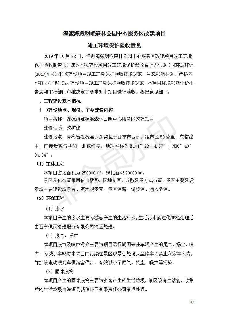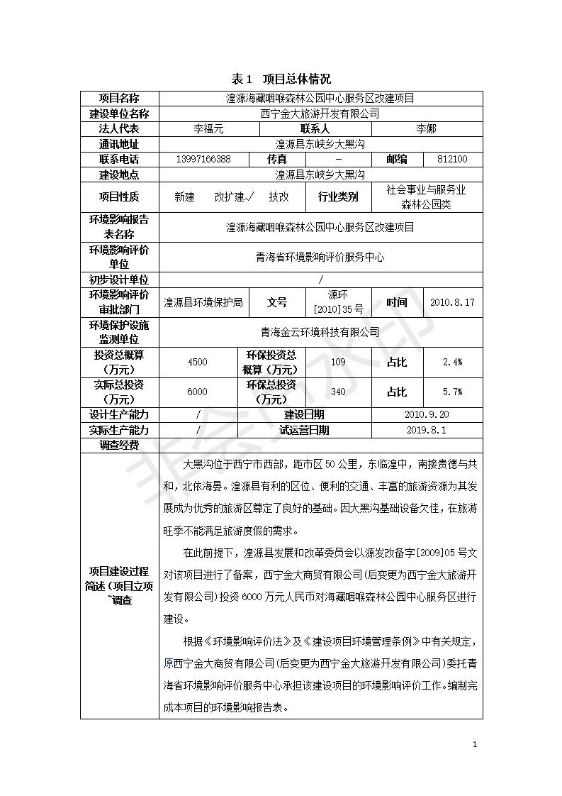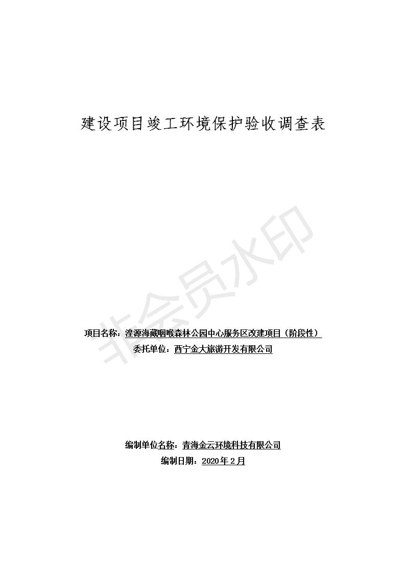 湟源海藏咽喉森林公園中心服務(wù)區(qū)改建項(xiàng)目(階段性)竣工環(huán)境保護(hù)驗(yàn)收調(diào)查表發(fā)布日期:(2020-4-29) 點(diǎn)擊次數(shù):3169 |