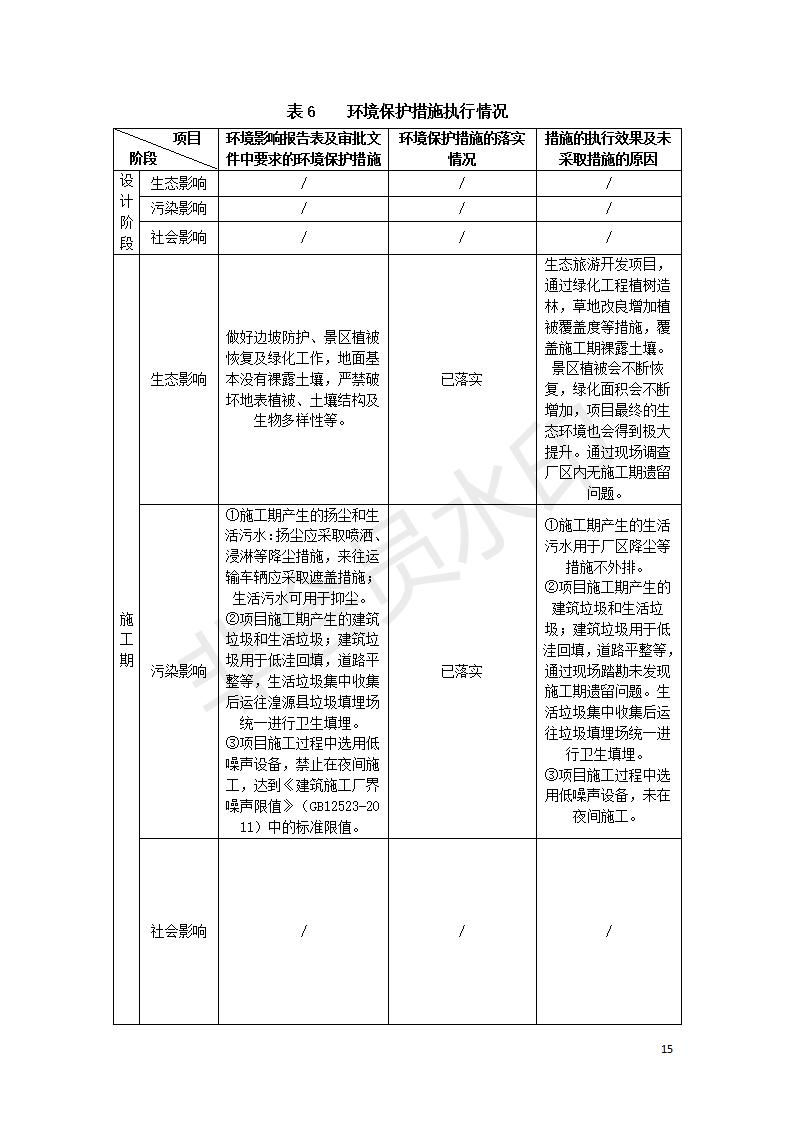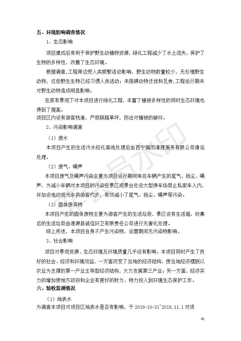 根據(jù)中華人民共和國(guó)國(guó)務(wù)院令第682號(hào)《國(guó)務(wù)院關(guān)于修改〈建設(shè)項(xiàng)目環(huán)境保護(hù)管理?xiàng)l例〉的決定》和《建設(shè)項(xiàng)目竣工環(huán)境保護(hù)驗(yàn)收暫行辦法》(國(guó)務(wù)院令682號(hào)),湟源海藏咽喉森林公園中心服務(wù)區(qū)改建項(xiàng)目(階段性),(包括竣工環(huán)境保護(hù)驗(yàn)收調(diào)查表和驗(yàn)收意見)公示如下。 一、項(xiàng)目名稱:湟源海藏咽喉森林公園中心服務(wù)區(qū)改建項(xiàng)目(階段性) 竣工環(huán)境保護(hù)驗(yàn)收調(diào)查表 二、地點(diǎn):青海省湟源縣東峽鄉(xiāng)大黑溝 三、建設(shè)單位:西寧金大旅游開發(fā)有限公司 四、建設(shè)內(nèi)容:本次階段性驗(yàn)收以自然景觀為主,建設(shè)內(nèi)容為濱水景觀帶、觀景臺(tái)、景區(qū)道路及基礎(chǔ)設(shè)施。項(xiàng)目范圍從景區(qū)大門至中心位置,全長(zhǎng)4800m。 五、聯(lián)系人:張工 六、聯(lián)系電 話:0971-6515411 七、公示時(shí)間:二〇二〇年四月二十九日至二〇二〇年五月二十八日 公示期間,對(duì)上述公示內(nèi)容如有異議,請(qǐng)以書面形式反饋,個(gè)人須署真實(shí)姓名,單位須加蓋公章。